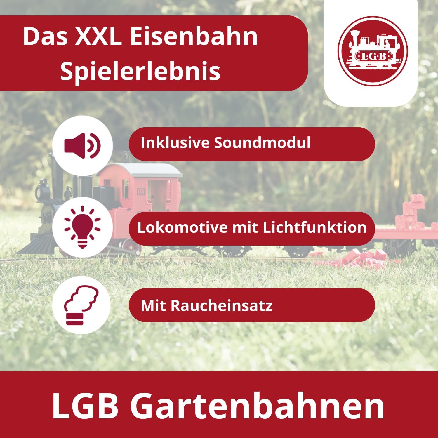 - LGB Qualität seit 1881 – Als einer der Weltmarktführer im Bereich der Garteneisenbahnen sorgt LGB, für herausragende Qualität, grosse Ersatzteilverfügbarkeit und ständigen Sortimentserweiterungen