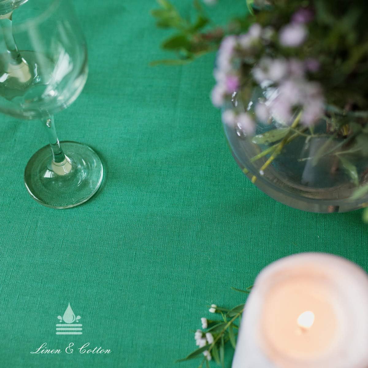 - Linen & Cotton Wasserabweisende Tischdecke ADELE aus 100% Leinen, Ideal für Drinnen und Draussen