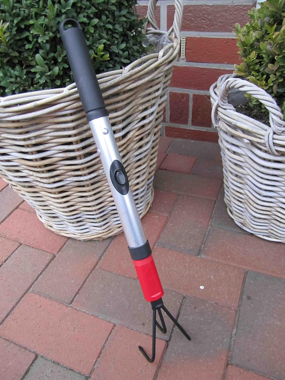 - Der 34 cm lange Wechselstiel lässt sich schnell und bequem auswechseln, so dass man trotz kleiner Abmessungen ein stabiles Werkzeug zur Hand hat