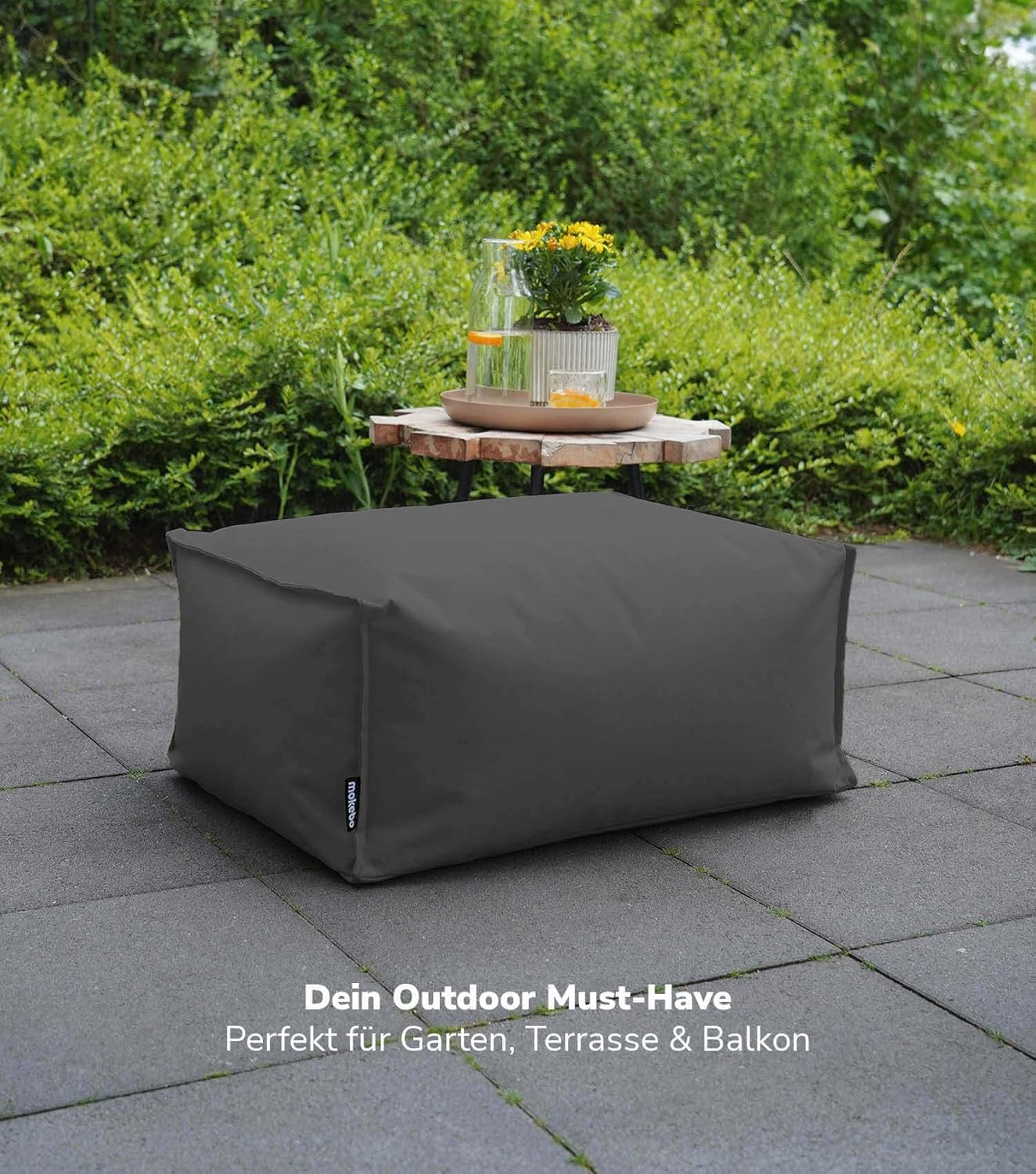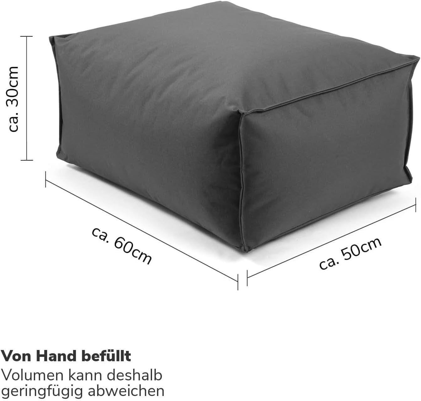 - FÜR DRINNEN & DRAUSSEN! Unser eckiger Sitzpouf ist dein Begleiter für gemütliche Stunden unter freiem Himmel und relaxte Momente Zuhause. Trotz wasserabweisendem Stoff sollte er jedoch nicht permanent auf nassem Grund oder in der Sonne stehen.