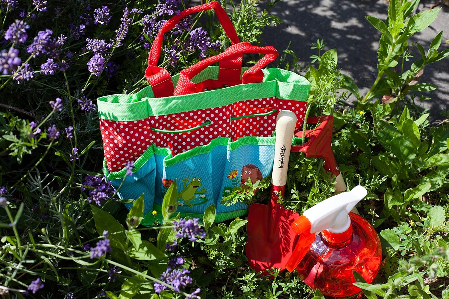 - Gartenwerkzeug-Set ✓ Damit es für die kleinen Gartenhelfer direkt losgehen kann, ist die Tasche bereits mit einer Schaufel, Harke und Sprühflasche bestückt und sofort einsatzbereit.
