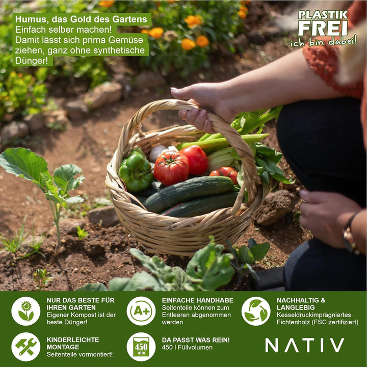 - NUR DAS BESTE FÜR IHREN GARTEN: Eigener Kompost liefert Gemüse & Pflanzen wichtige Nährstoffe & steigert Ihre Erträge. Mit dem Komposter können sie 450l Komposterde einfach selbst herstellen