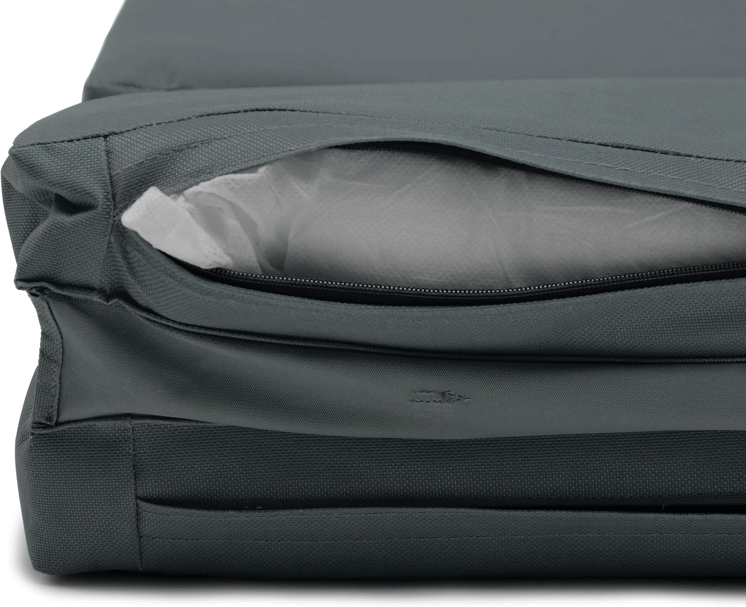 - Zwei hochwertige, wasserabweisende und pflegeleichte Polsterauflagen in schwarz / dunkelgrau mit 4 Segmenten für eine exakte Passform. So werden Ihre eleganten und einladenden Outdoor-Möbel im Garten oder auf der Terrasse noch bequemer. Sie sind auch