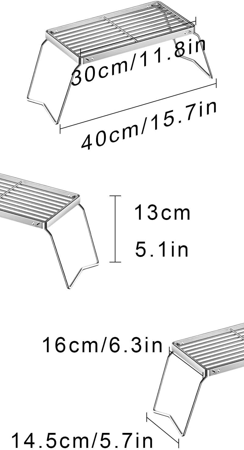 - Hohe Kompatibilität:Outdoor Grillrost mit Verwendet ein Streifennetzdesign, um die Wärmeverteilung gleichmässiger zu gestalten und einen besseren Kocheffekt zu erzielen.Faltbarer Lagerfeuer Grill Die Grösse von 16x30cm weist eine gute Kompatibilität