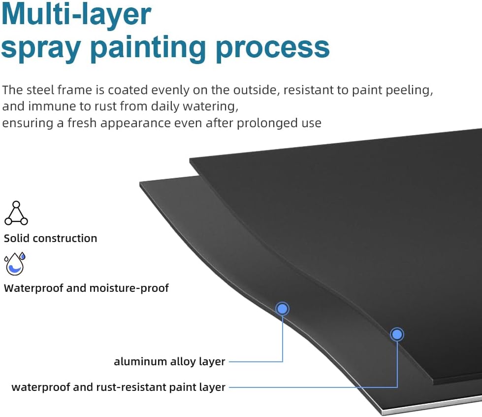 - **Professioneller Outdoor-Blumenständer**: Der Blumenständer besteht aus hochwertigem Aluminium, das nicht rostet, sich nicht verformt und korrosionsbeständig ist. Ideal für den Aussenbereich, wetterfest und langlebig mit einer 10-jährigen Garantie.
