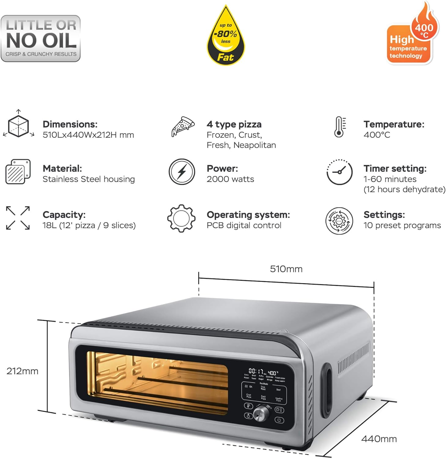 - Capacity : 18.0 liters