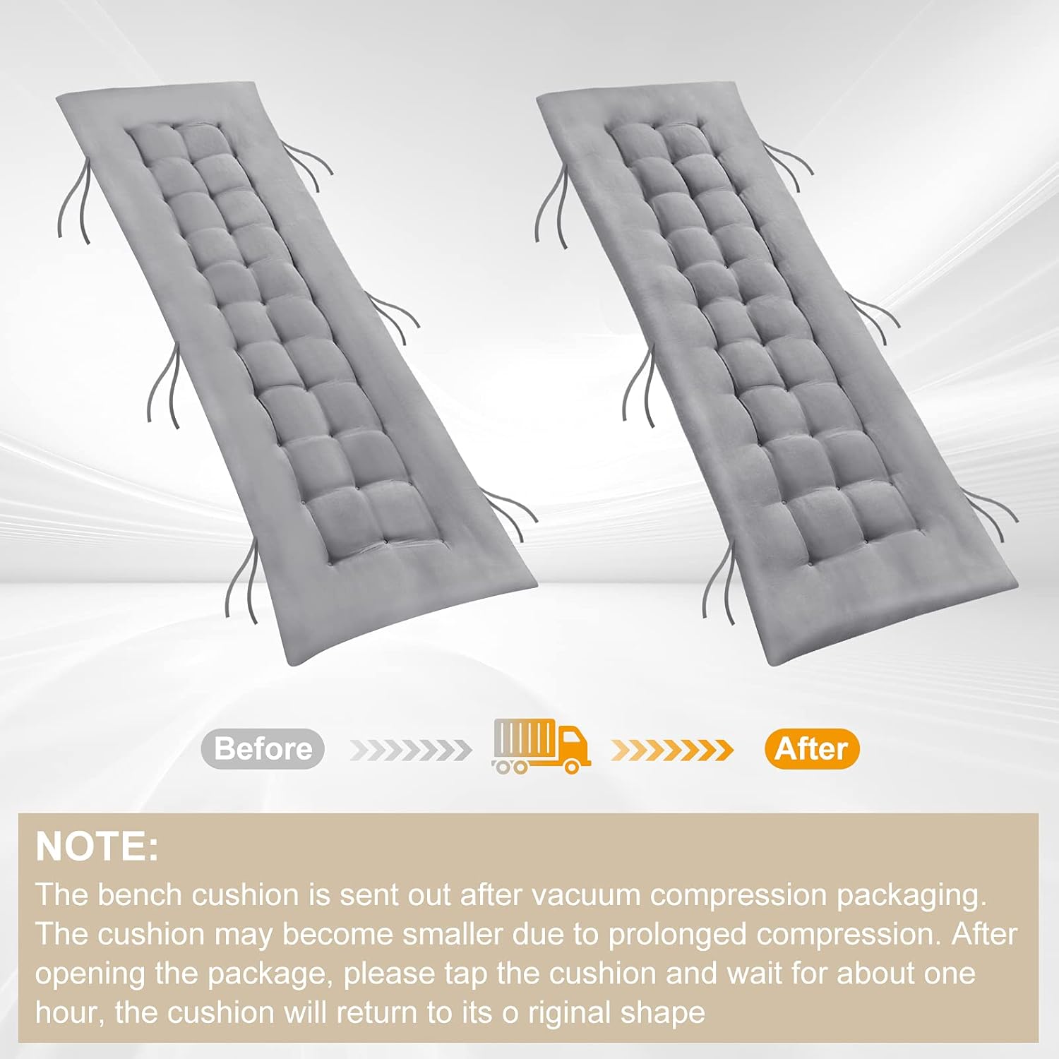 - Bitte beachten Sie: 1. Aufgrund der manuellen Messung kann es zu Abweichungen von ±2 cm kommen. 2. Das Bankkissen wird nach der Vakuumkompressionsverpackung verschickt. Da das Kissen über einen längeren Zeitraum komprimiert wird, ist es