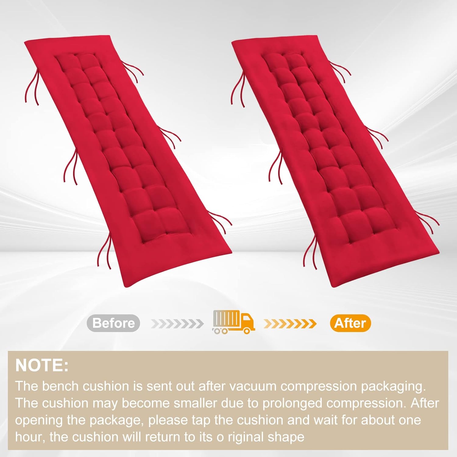 - Rote Kissengrösse: 120 cm x 48 cm x 5 cm, geeignet für 2- oder 3-Sitzer. Tolles Terrassenbankkissen, Schaukelkissen, Korbsitzkissen, Liegebankkissen, Esszimmerbankkissen, Terrassenstuhlkissen