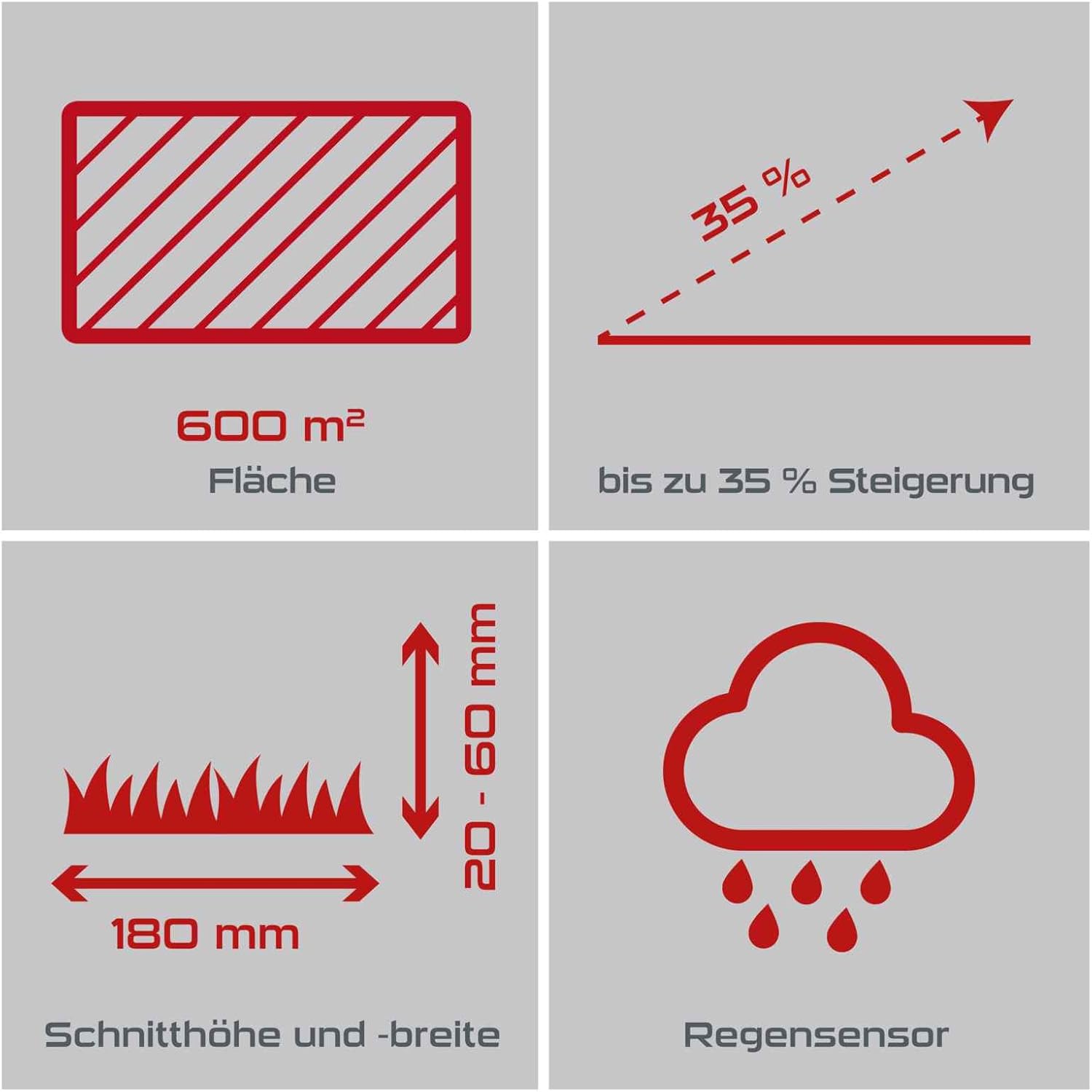 - Ideal für Gärten bis 600 qm | Geräuscharm - nur 62 dB
