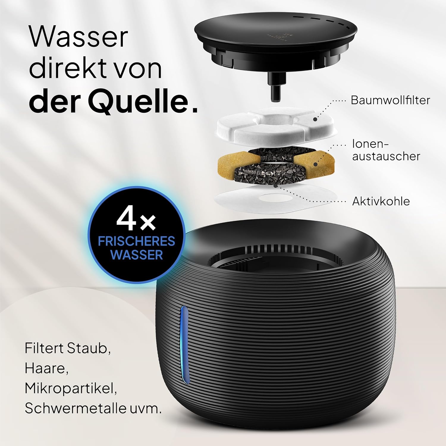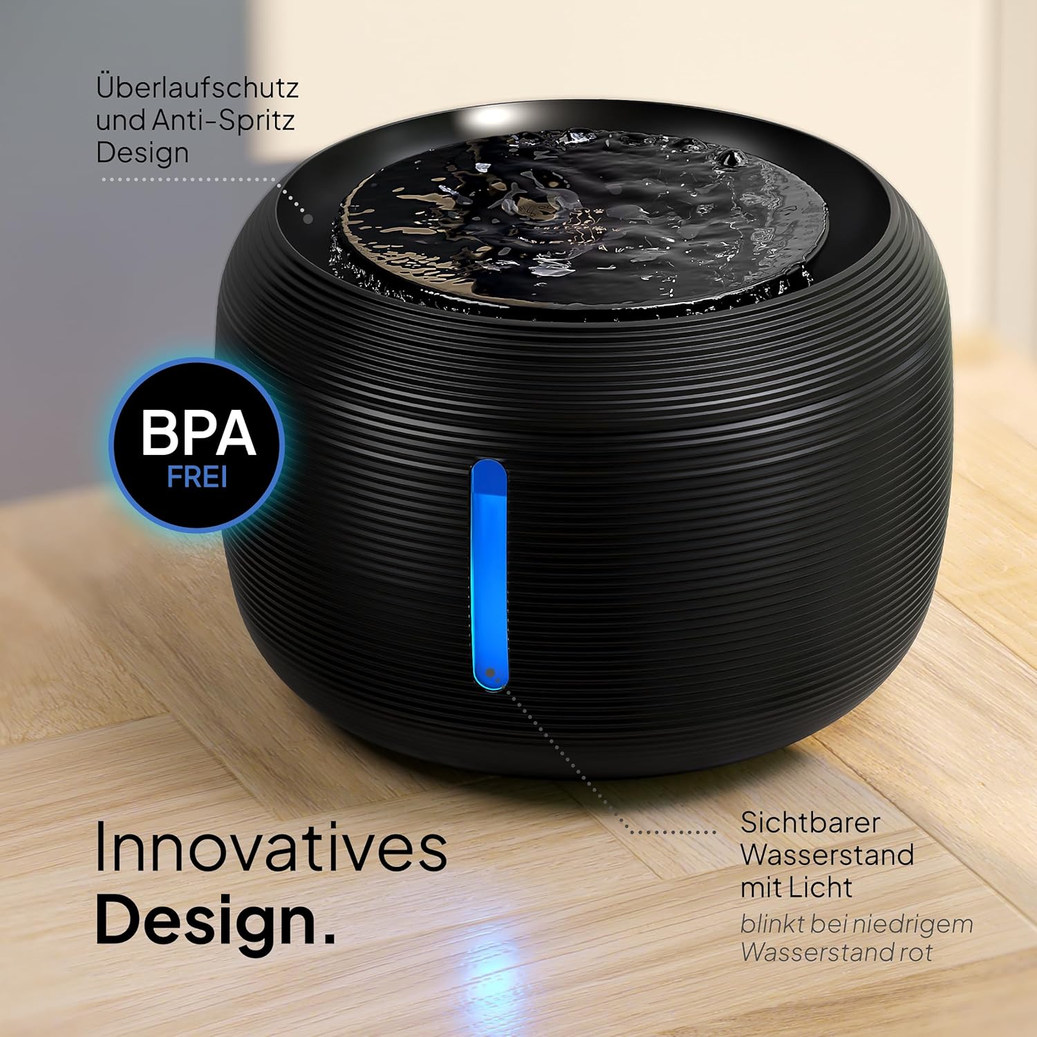 - ✔LED - Beleuchtung für einfache Sichtbarkeit: Die eingebaute LED-Beleuchtung sorgt dafür, dass Sie den Wasserstand auf einen Blick erkennen können, ohne den Brunnen öffnen zu müssen.
