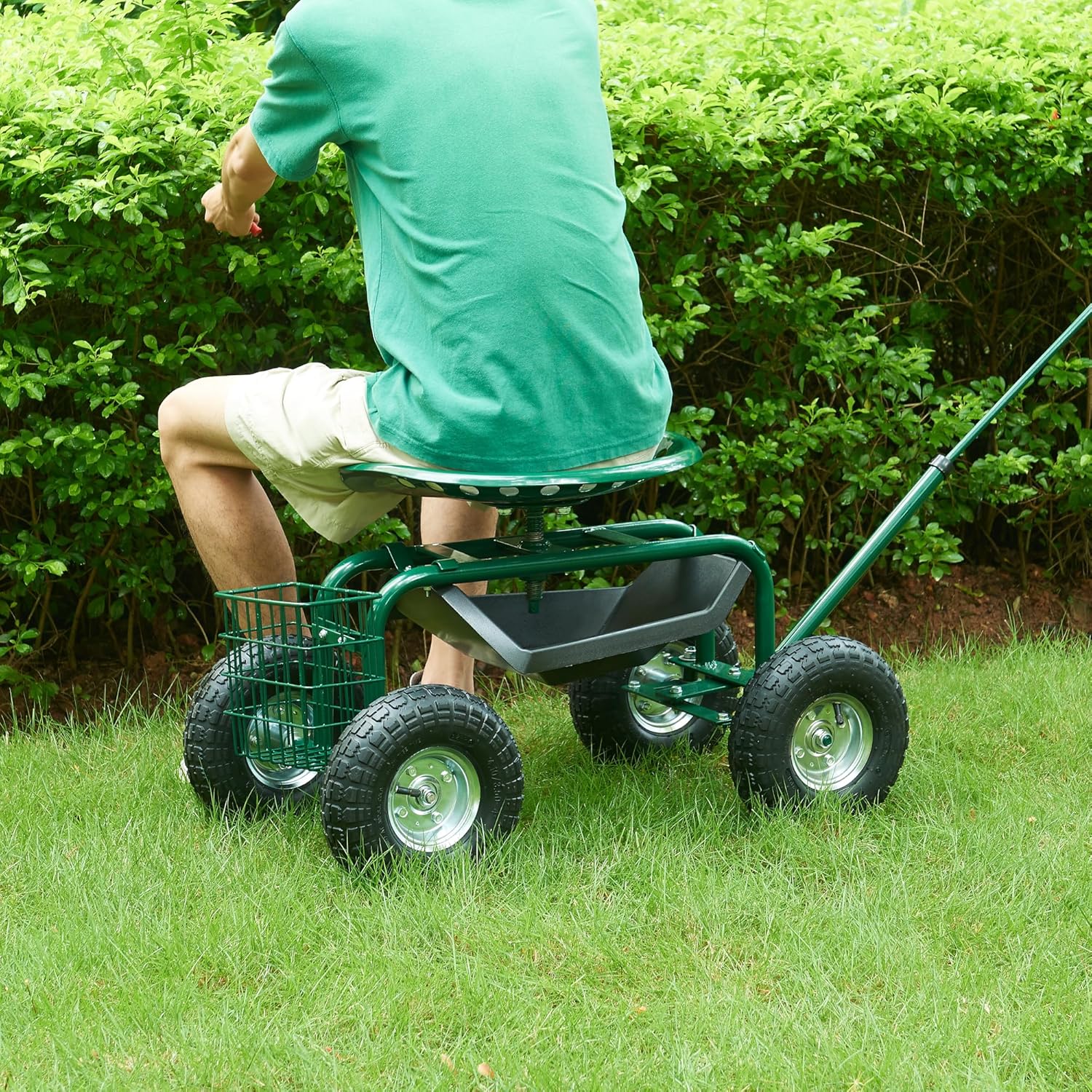 - STABILER STAHLRAHMEN: Der Gartenscooter ist mit einem stabilen Stahlrahmen ausgestattet, der für optimale Haltbarkeit und Langlebigkeit sorgt. Dies macht ihn robust genug, um den täglichen Belastungen bei der Gartenarbeit standzuhalten.