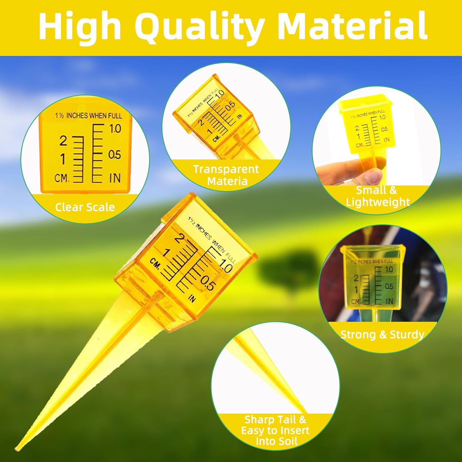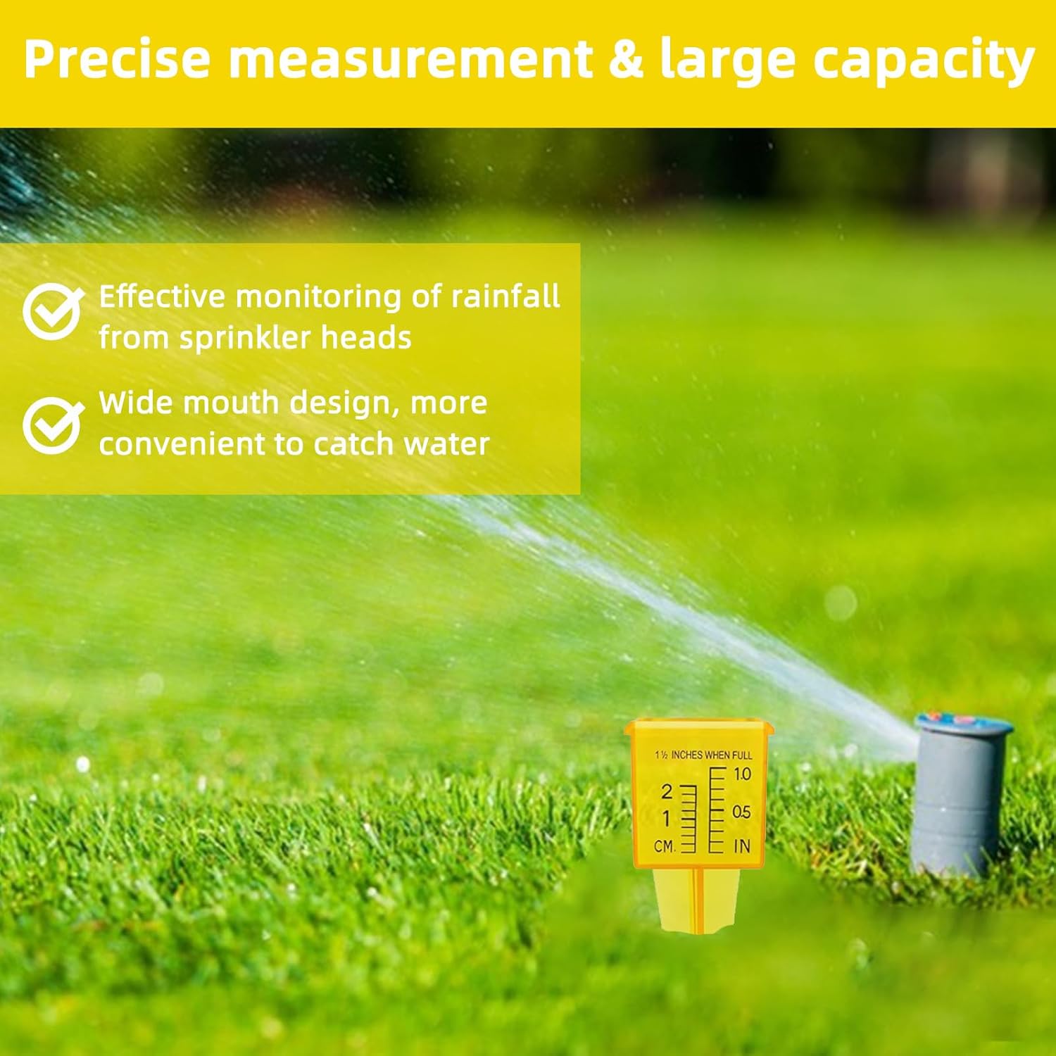 - 【Breiter Mund Grosse Kapazität】: Dieser Niederschlagsmesser kann auf dem Boden befestigt werden, das Kunststoffrohr im Inneren ist leicht zu entfernen. Breiter Mund Rasenwasserzähler macht es einfacher, Wasser zu bekommen. Die leuchtend gelbe Farbe