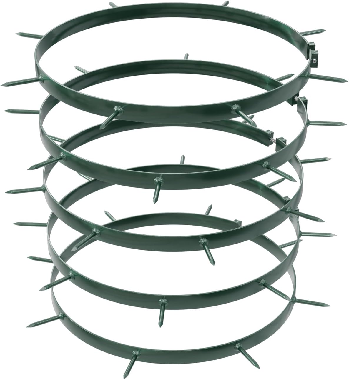 - DETAILS: Durchmesser: ca. 40 cm, Anzahl der Dornen auf einer Schelle: 6, Länge der Dornen: 60 mm, Gewicht des Sets: ca. 4,5 kg., Pulverbesichtet in grün, Lieferumfang: 1 x Set bestehten aus 5 Schellen (Metallringen), Lieferung ohne Walze
