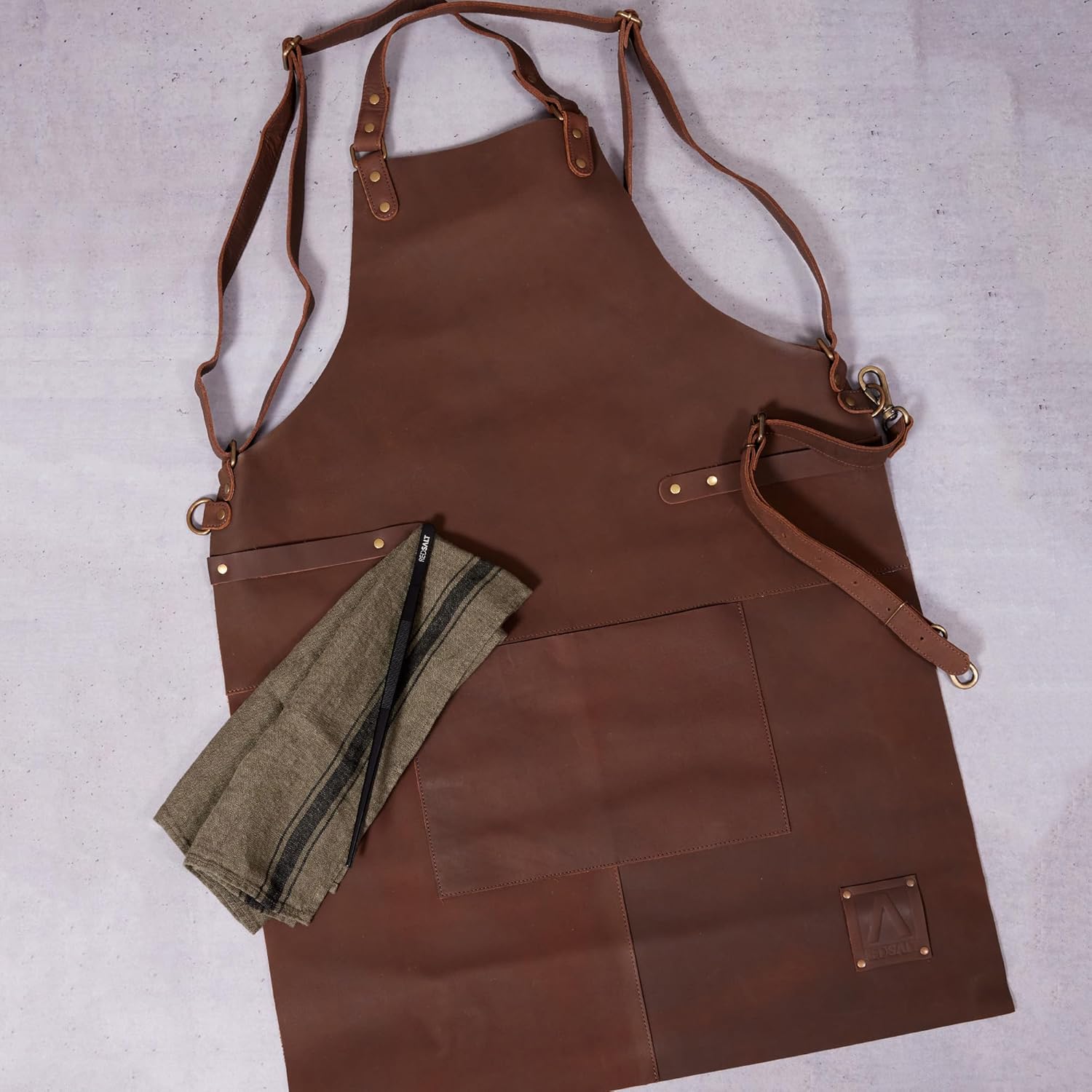 - ✅ TRAGEKOMFORT: Auch im Dauereinsatz trägt sich unsere Schürze durch die überkreuzten Schulterträger immer komfortabel - Dank des einzigartigen Verschlusssystems kann die Lederschürze schnell und einfach an die individuellen Anforderungen