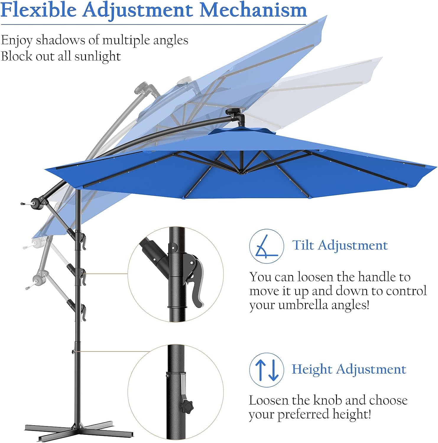 - ★ Kurbel- & Neigungssystem für einfache Bedienung ★ Mit dem Kurbelsystem können Sie den Ampelschirm mühelos öffnen und schliessen. Mit dem Neigungssystem können Sie ausserdem den Winkel des Ampelschirms an Ihre Bedürfnisse anpassen, um den