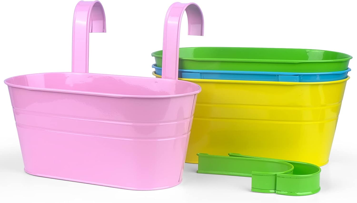 - Diese farbigen Blumentöpfe aus Eisen mit Haken können überall im Innen- und Aussenbereich aufgehängt werden. Die Blumentöpfe können mit bunten Blumen, leckeren Kräutern, Paprika, saftigen Erdbeeren, Salatgärten, prallen Tomaten usw. gefüllt