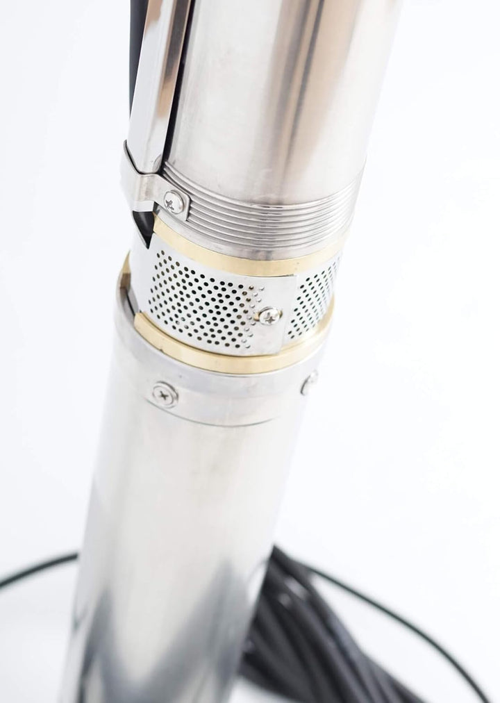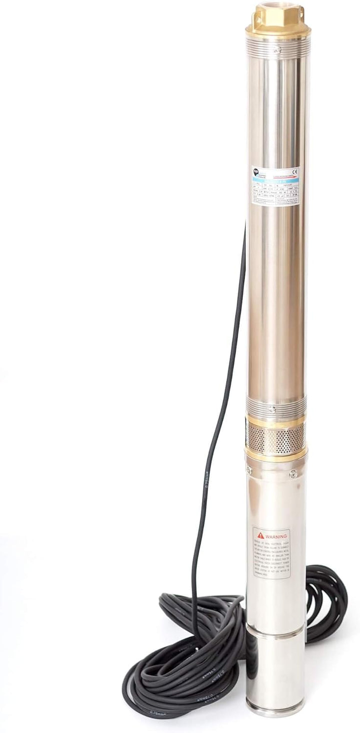 - Robuste Qualitäts-Tiefbrunnenpumpe SK90QJD318-1.5 aus rostfreiem Edelstahl und Messing mit integriertem Anlaufkondensator und hochwertigen gekapselten Elektromotor mit einer Motorleistung von 1500W und einer Förderleistung von 5800 Liter/h (!!
