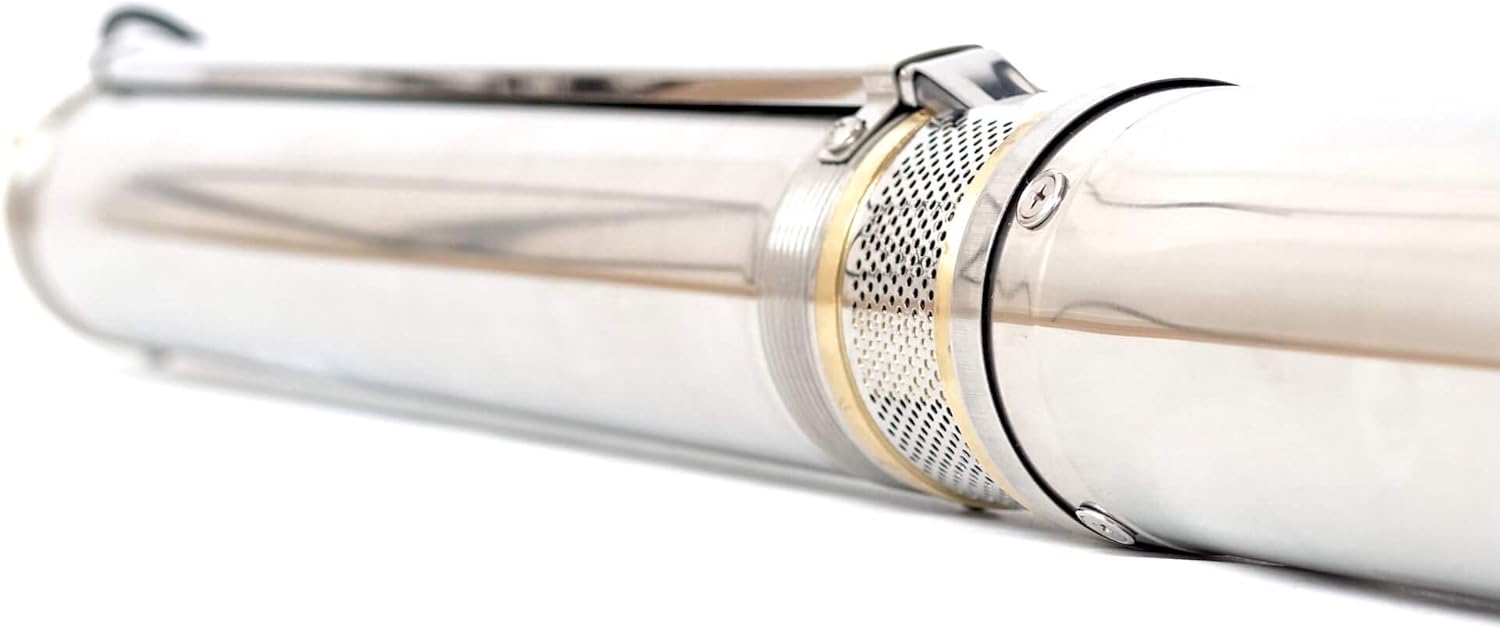 - Die Pumpe verfügt über 18 schwimmend gelagerte Förderscheiben, daher ist es möglich Sandanteile bis zu 5% zu verarbeiten. Das Gehäuse besteht aus schlagfesten Edelstahl.