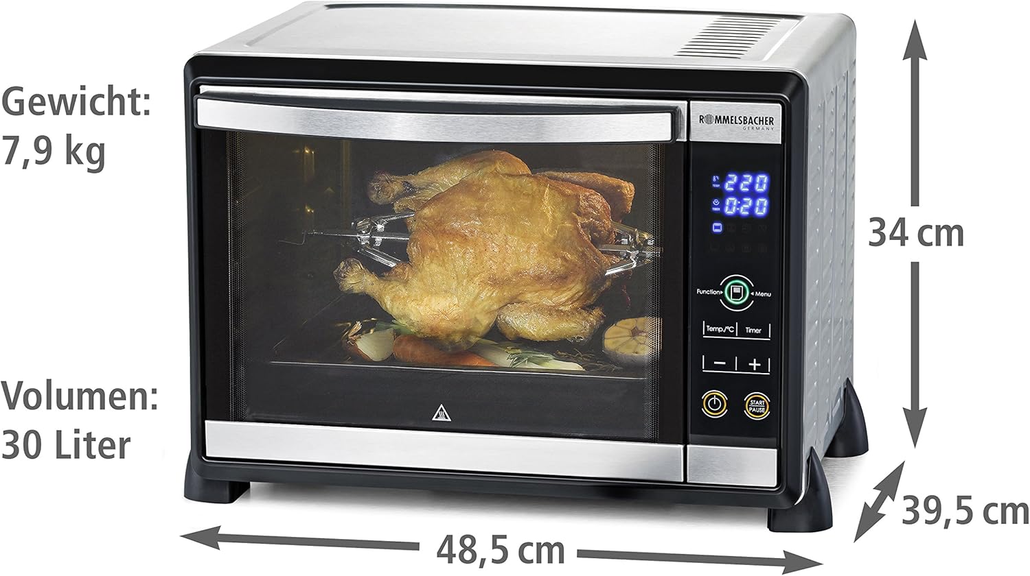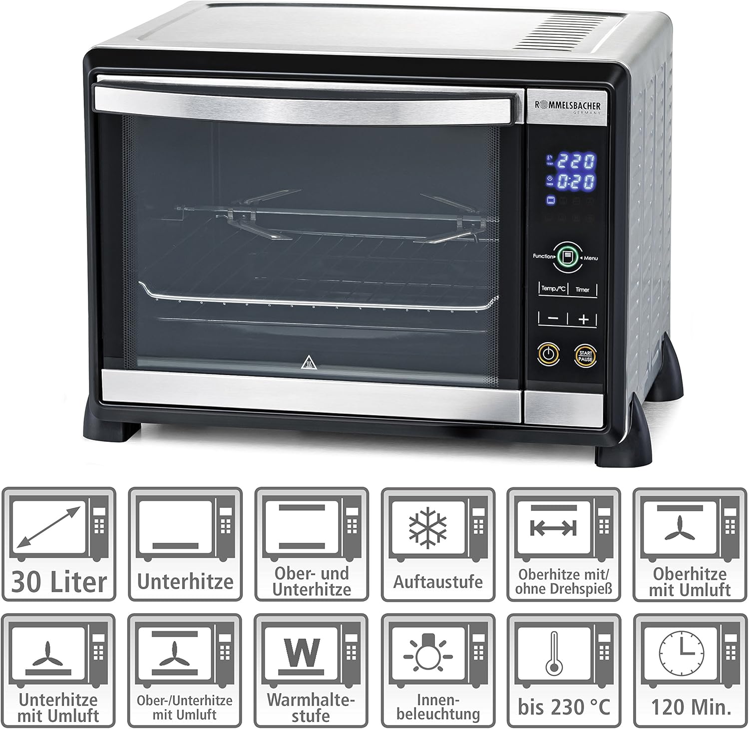 - Produkt 1: Grosses Volumen: 30 Liter, für Backformen bis 29 cm Durchmesser, elektronische Bedienung über Touch Control Sensoren, grosses Display mit Anzeige aller Betriebsfunktionen
