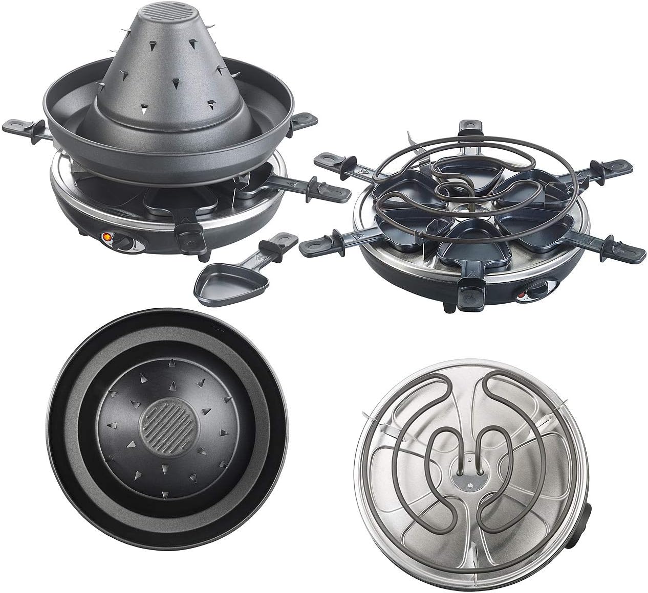 - Traditioneller Tatarenhut aus Stahl mit Widerhaken • Fondue-Rinne zum Garen von Fleisch, Fisch, Gemüse u.v.m. • Raclette-Grill mit Pfännchen für 6 Personen • Stufenlose Temperaturregelung per Drehregler • Hut und Pfännchen mit Antihaft-Beschichtung