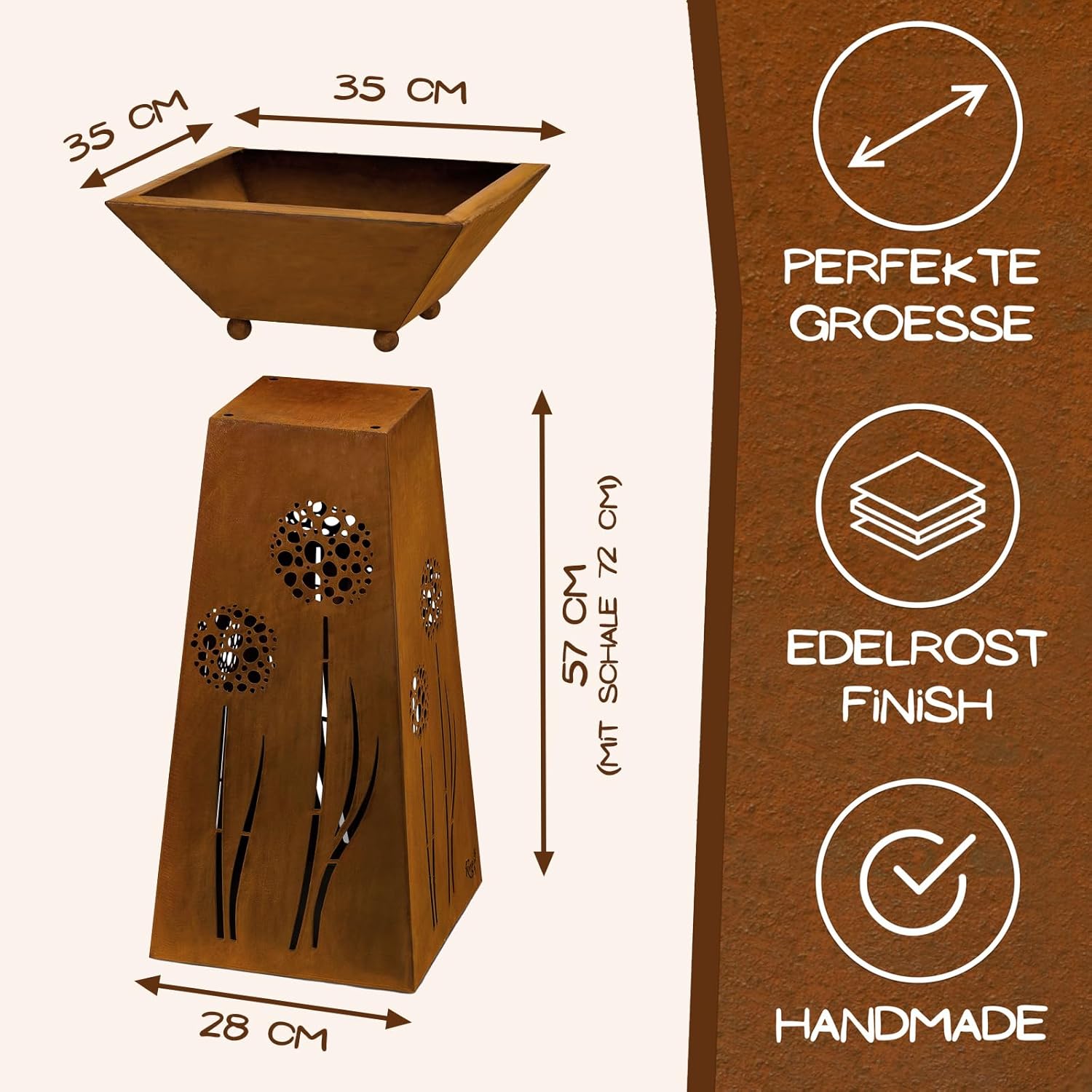 - ✅ 𝐄𝐂𝐇𝐓𝐄𝐑 𝐑𝐎𝐒𝐓 Die Gartendeko Metallsäule mit einer Gesamthöhe von 72 cm und abnehmbarer Pflanzschale erhält durch ein Edelrost Finish die Vintage Deko Optik