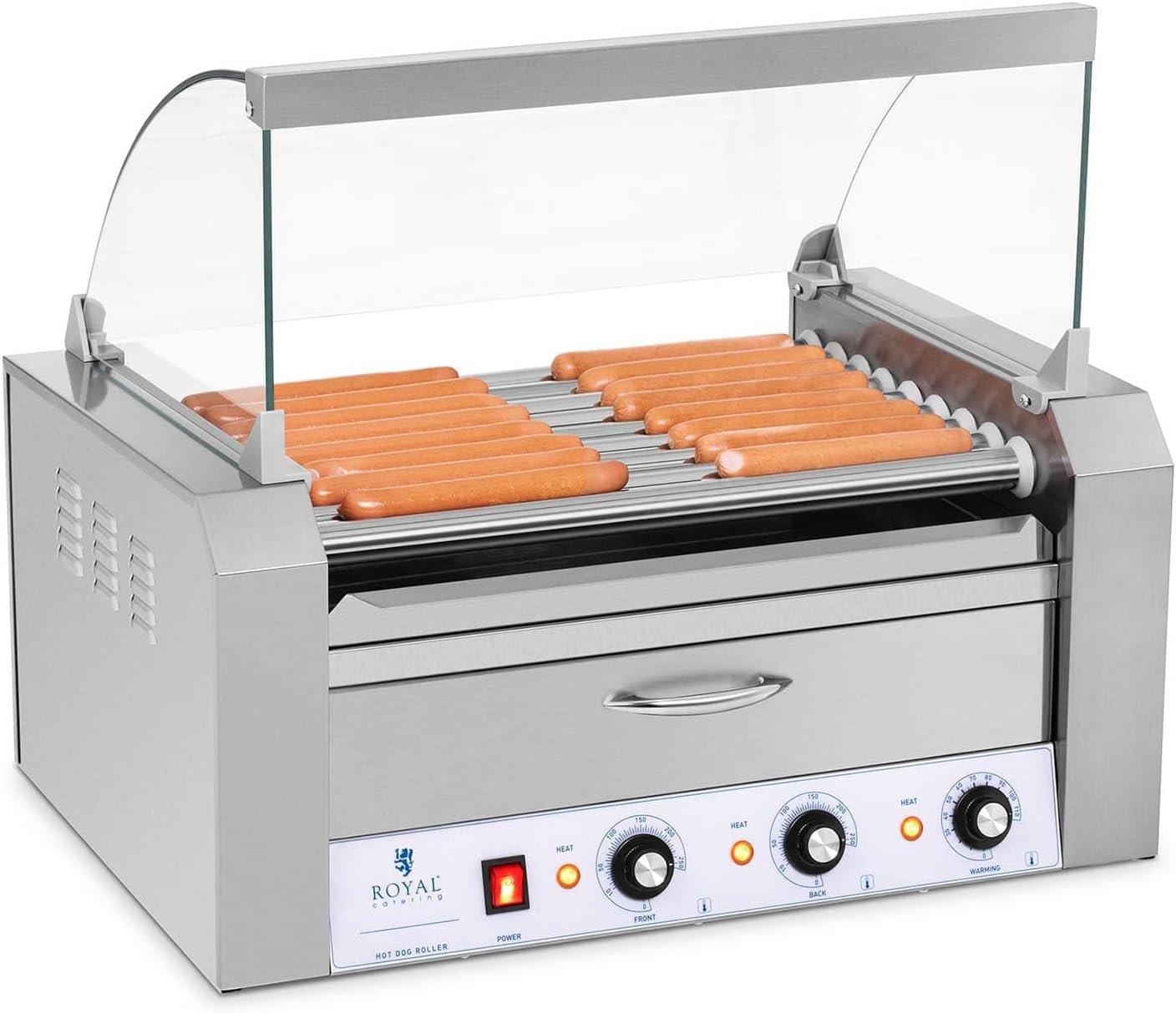 - geräumig - 9 Rollen/Heizstäbe für bis zu 16 grosse Würstchen, inkl. Schublade für warme Brötchen