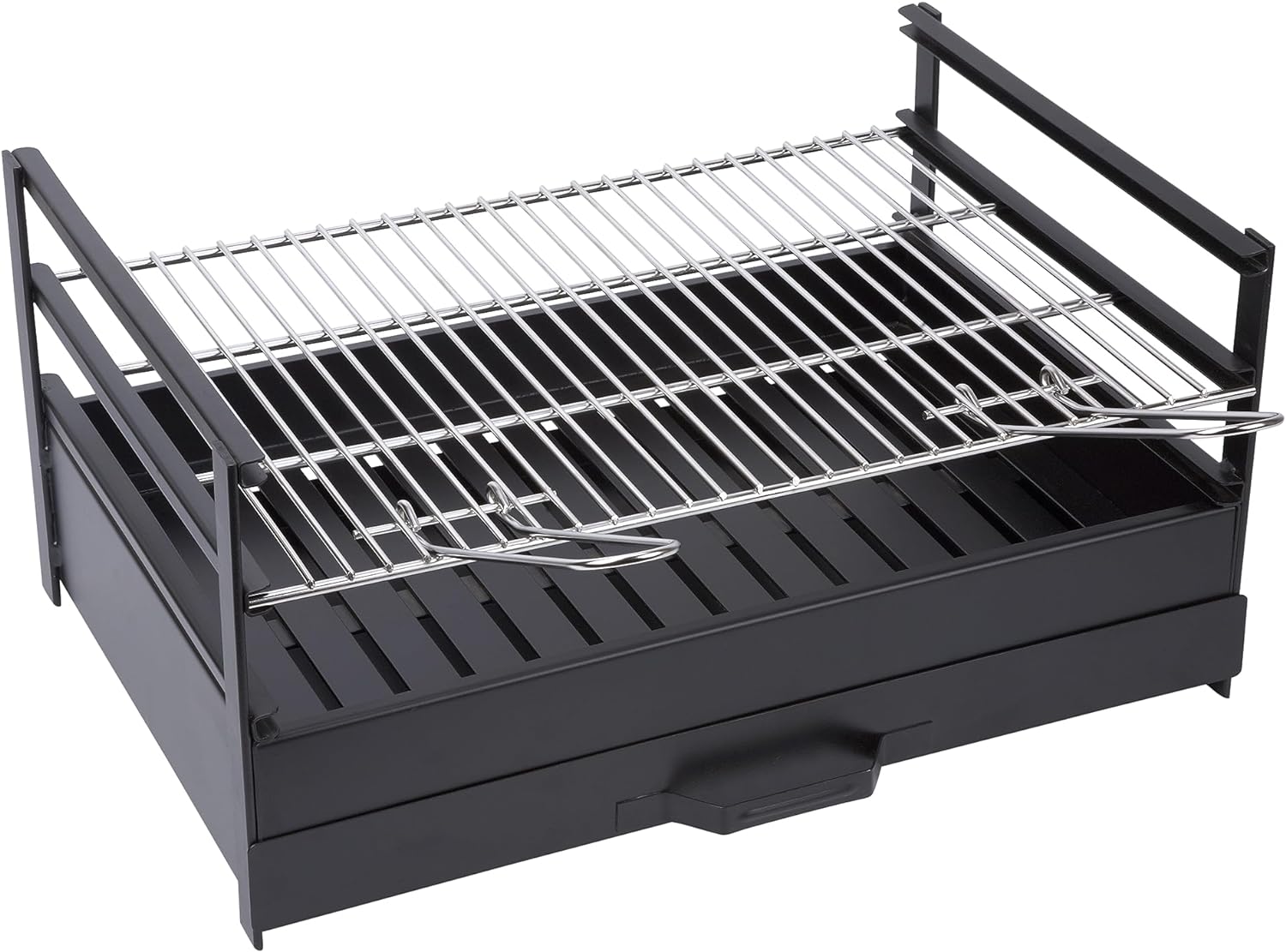 - Mit Rost aus elektropoliertem Edelstahl 18/8 (AISI 304), 60x40 cm, und klappbaren Griffen.