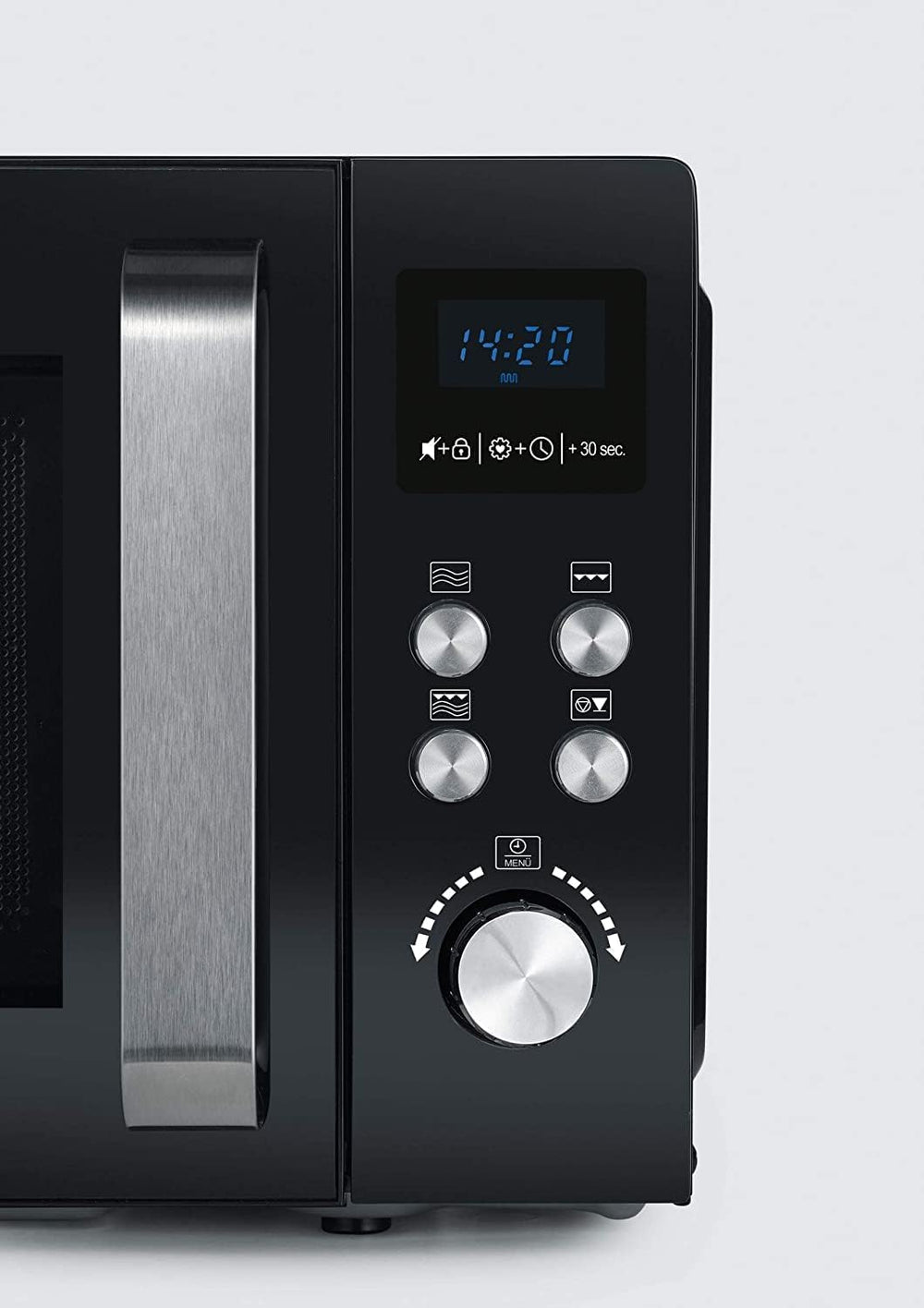 - Einfache Bedienung: Grosser Garraum mit Drehteller (Ø 24,5 cm) und Grillrost, 10 Leistungsstufen inkl. Auftauprogramm nach Gewicht und Zeit, Max. Leistung der Mikrowelle: 800 W und des Grills: 1.000 W