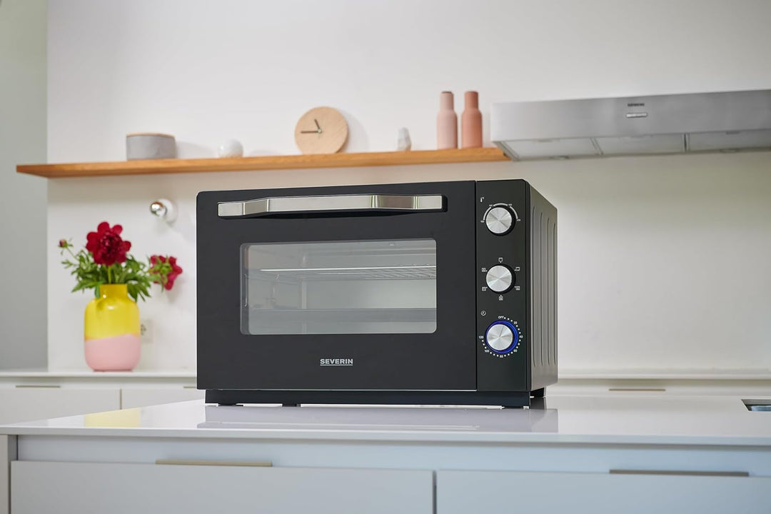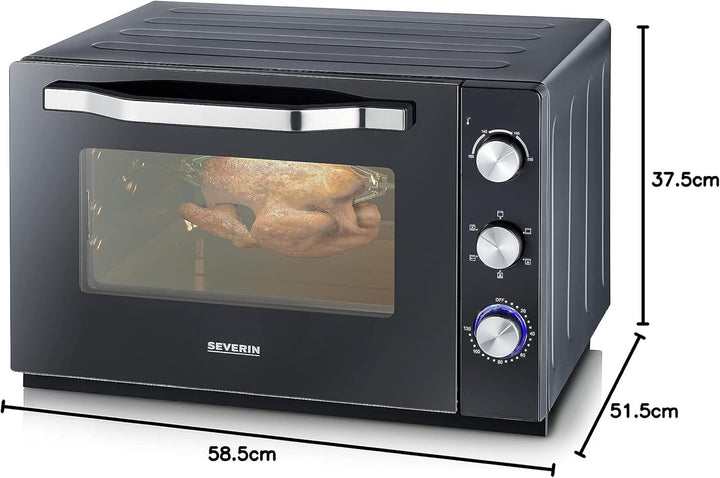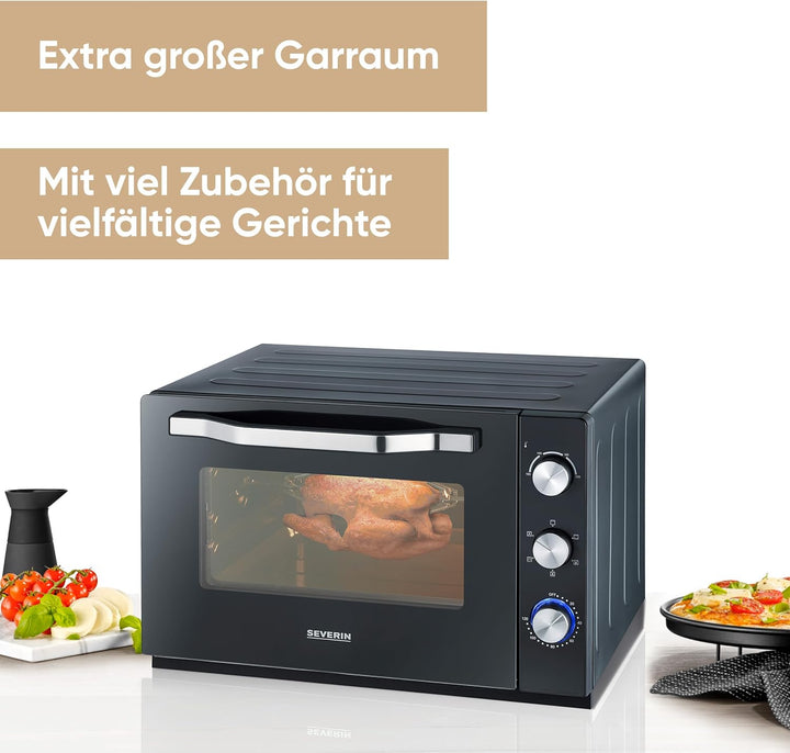 - Vielseitiger Tischbackofen – Mit 60 Litern Kapazität können bequem grosse Pizzen und Kuchen sowie Pommes, Braten, Aufläufe und Brötchen gebacken werden.