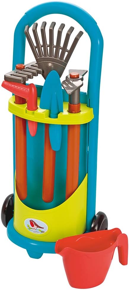 - Ein zweirädriger Wagen mit den 6 wichtigsten Zubehörteilen für den Gärtner Rechen Pflücker Laubpflücker Schaufel Dibbler und Giesskanne