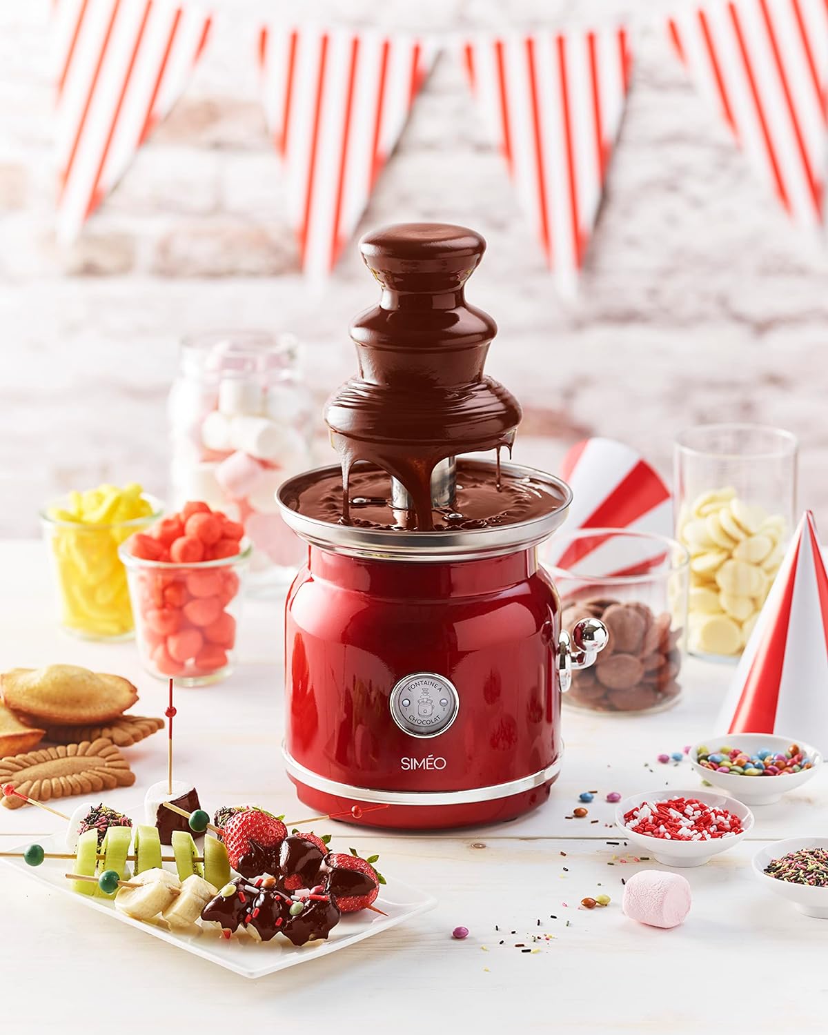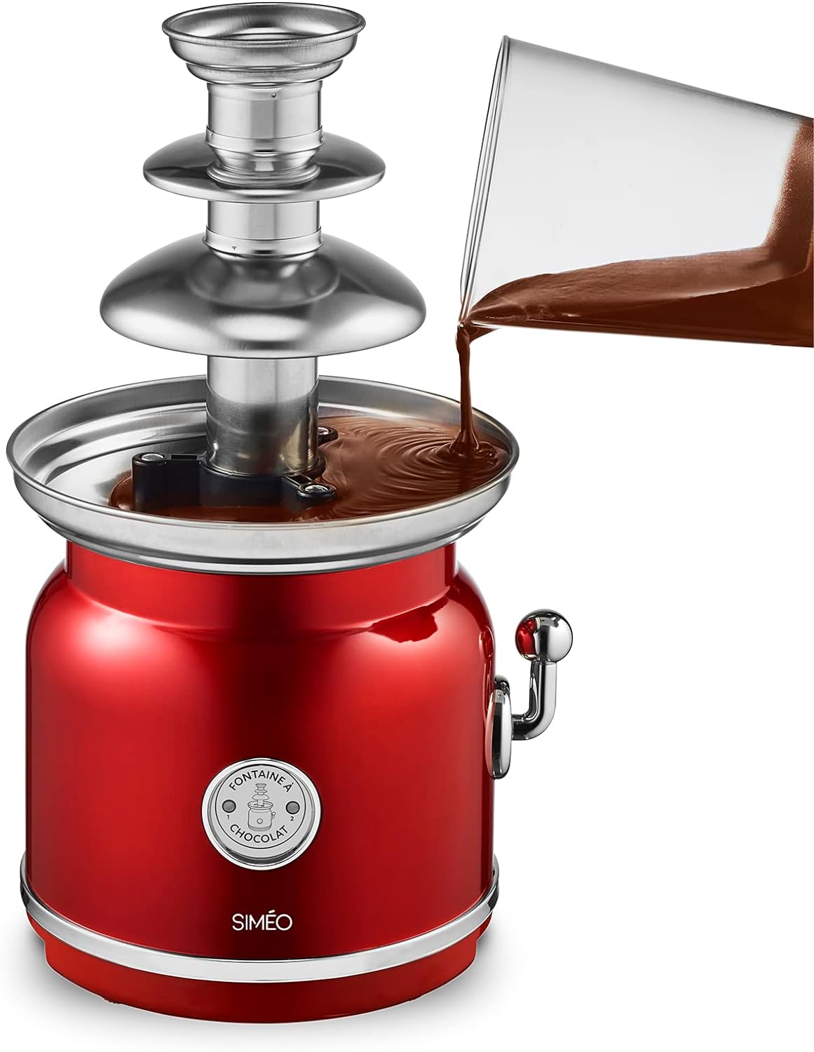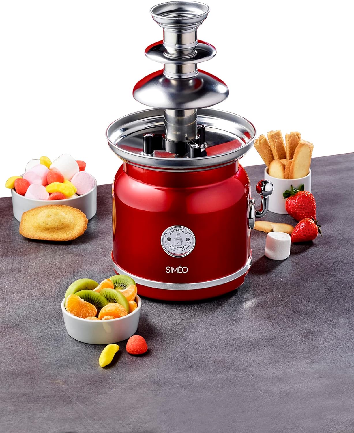 - Um die grösste Anzahl an Leckereien zu befriedigen, bietet der Schokoladenbrunnen FCH450 die Möglichkeit, alle Arten von geschmolzenen Schokolade, Schwarz, Milch, Weiss oder Blond (Dulcey) zu geniessen