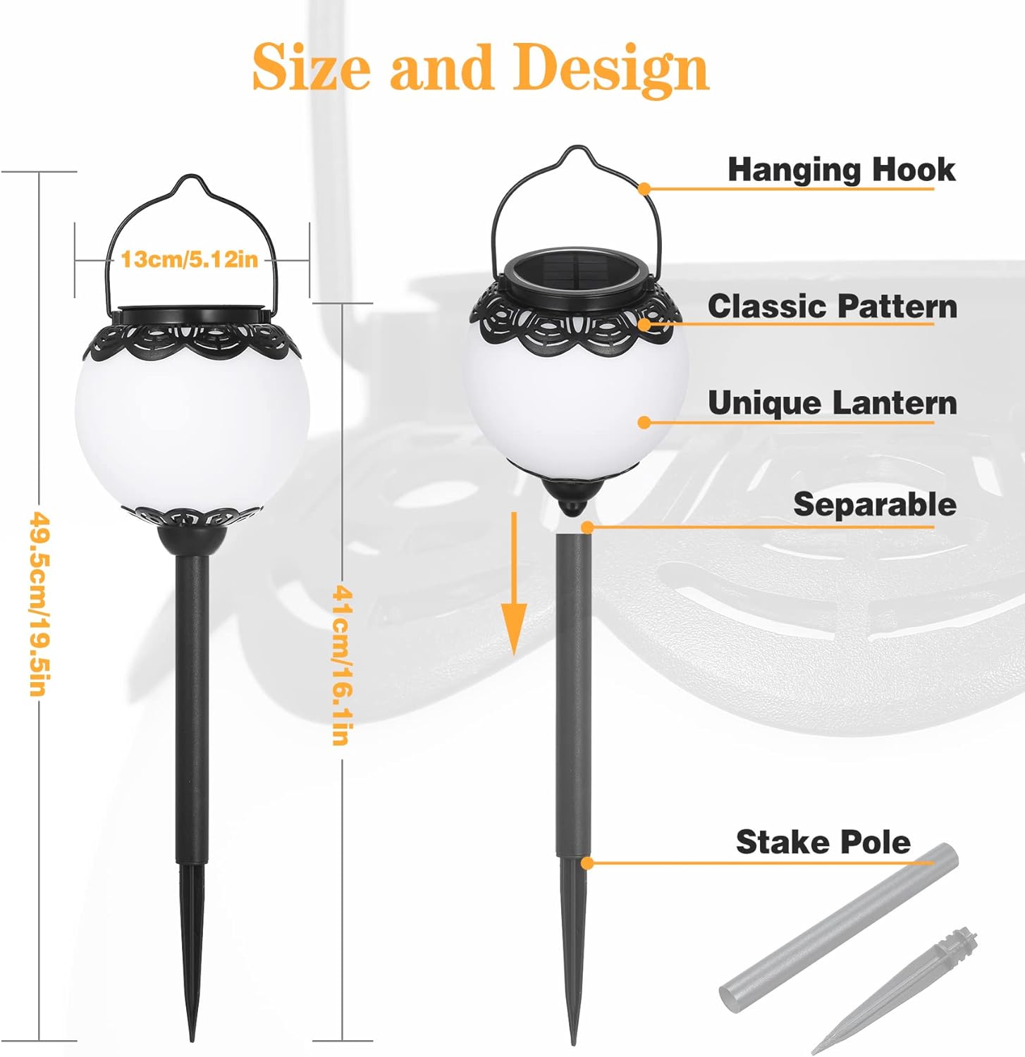 - 【Solarlaterne und Solarlampen 2 in 1】 Es kann sowohl als hängende Solarlaterne als auch als Solarlampen im Garten, auf der Veranda, auf dem Balkon, auf dem Weg usw. verwendet werden. Das exquisite Aussehen dieses Solarlaterne für aussen es kann