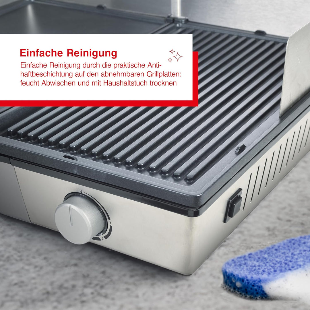 - UNKOMPLIZIERTE REINIGUNG - Unkomplizierte Reinigung durch abnehmbare, spülmaschinengeeignete Grillplatten, Hochwertige Whitford Xylan Antihaftbeschichtung, Integrierter Fettablauf und Fettauffangschale