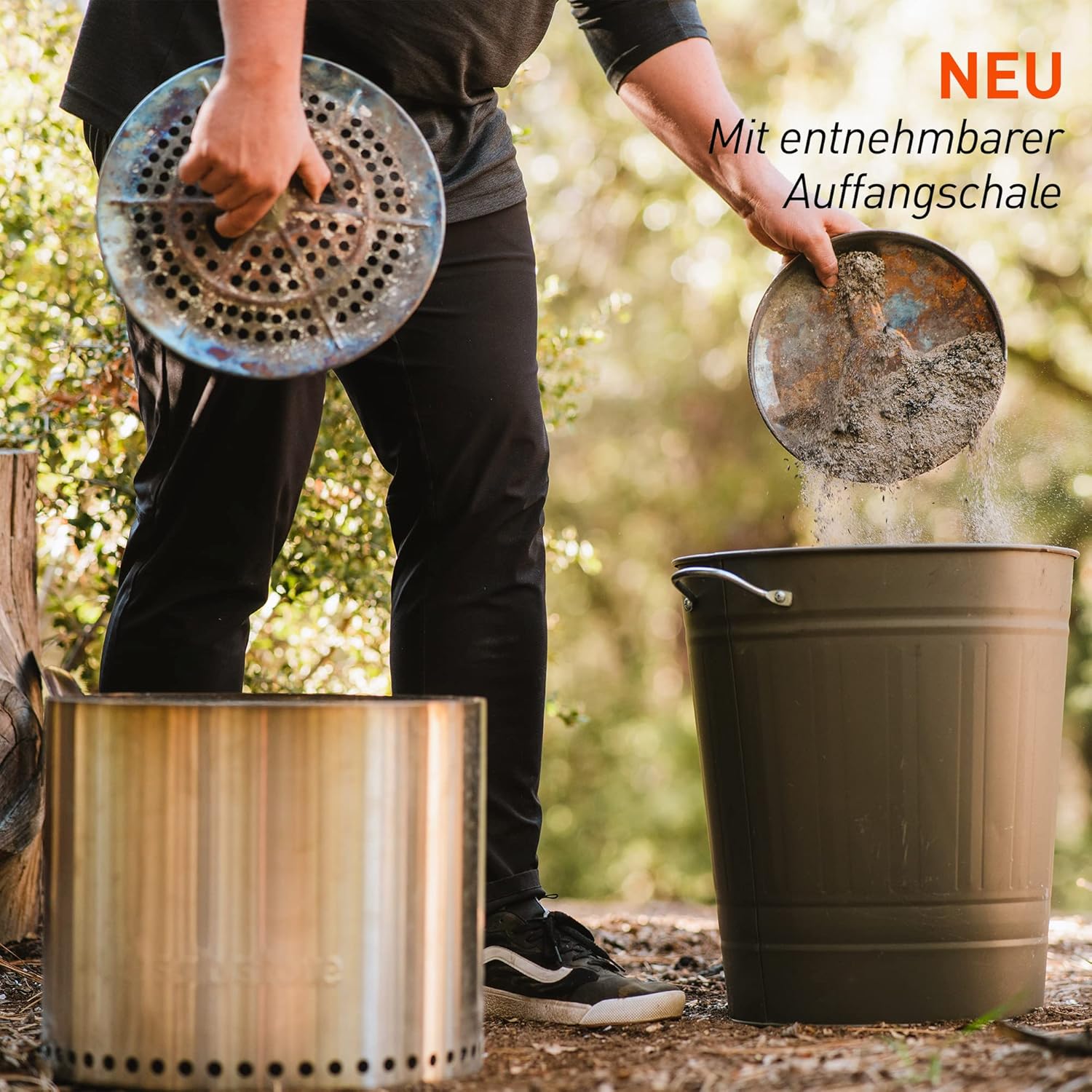 - WENIGER RAUCH, BEI GRÖSSERER FLAMME: Die Feuerstelle verfügt über unsere einmalige 360°-Luftzirkulationstechnologie mit doppelwandigem Design und Belüftungslöchern, um das Feuer von unten mit Sauerstoff zu versorgen. Dadurch entsteht ein