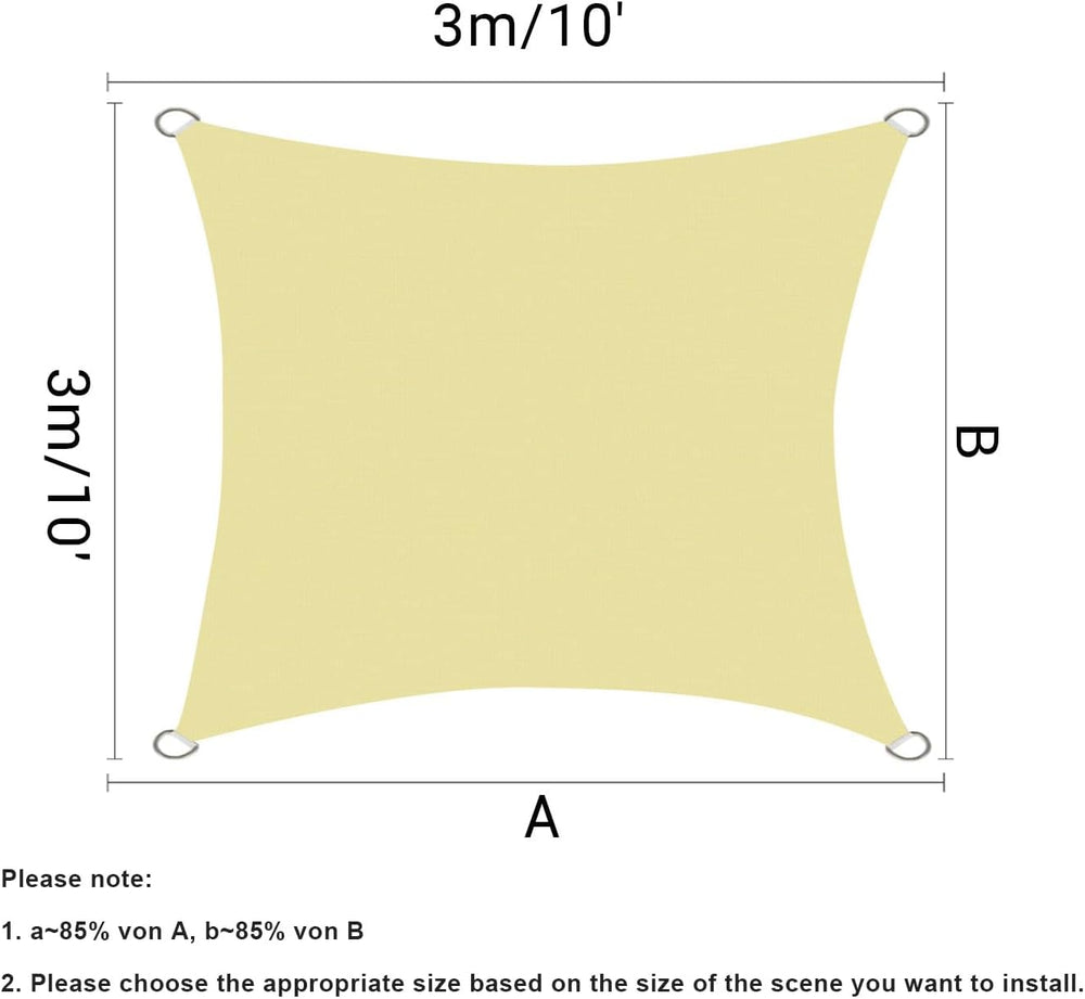 - 【Sonnenschutz wasserabweisend】 Dieses Sonnensegel besteht aus hochdichtem PES polyester mit PU-Beschichtung (185 g/m²). Beständig gegen Wasser und Risse, aber nicht empfohlen, bei starkem Regen oder widrigen Wetterbedingungen zu verwenden.