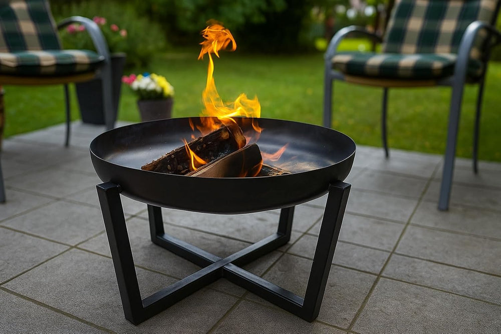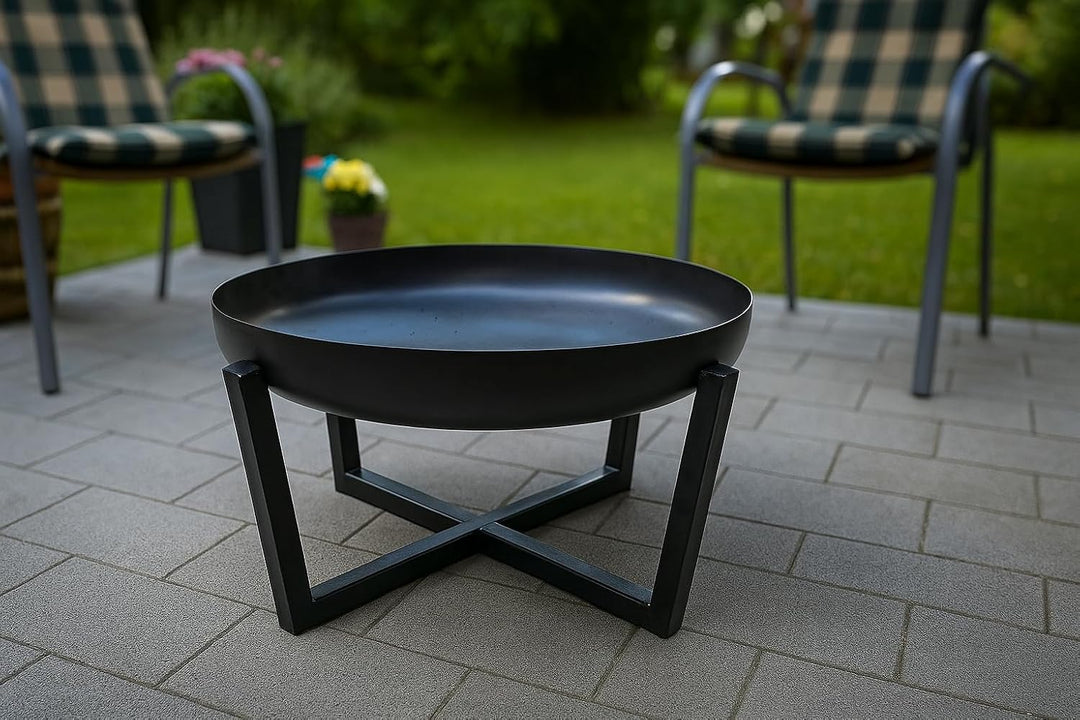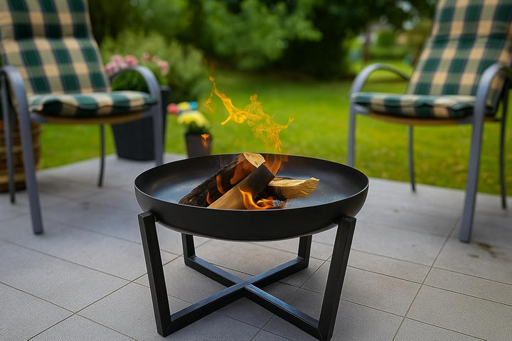 - SICHER UND STABIL: Die Feuerschale steht auf einem Gestell das fest verschweissten ist. Dadurch steht die Feuerschale sicher und wackelt nicht, auch auf unebenen Untergründen.