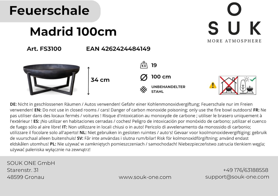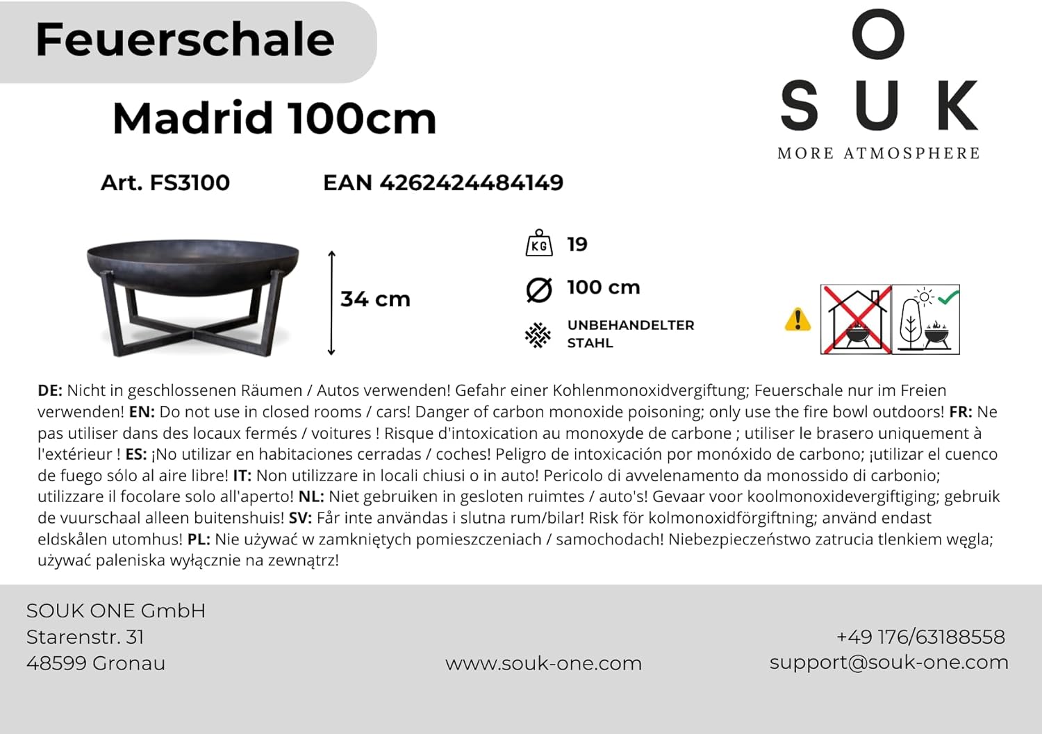- VIEL PLATZ FÜR DEIN FEUER: Die Feuerschale hat einen Durchmesser von 100 cm. Dies bietet ausreichend Platz für grosse Holzscheite. Die Feuerschale bietet daher wohlige Wärme für 8 bis 10 Personen.