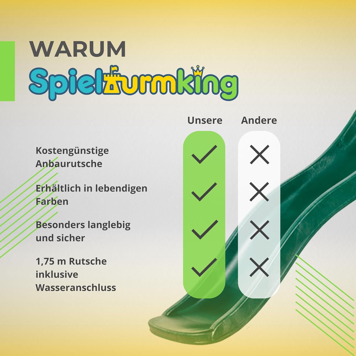 - HOCHWERTIGE RUTSCHE: Der schnellste Weg von oben nach unten bei einem Spielturm zu gelangen, ist die tolle Wellenrutsche hinunter zu rutschen. Eine Wellenrutsche ist ein geliebtes und unumgängliches Zubehör für jeden Kletterturm. Die Rutsche kann als