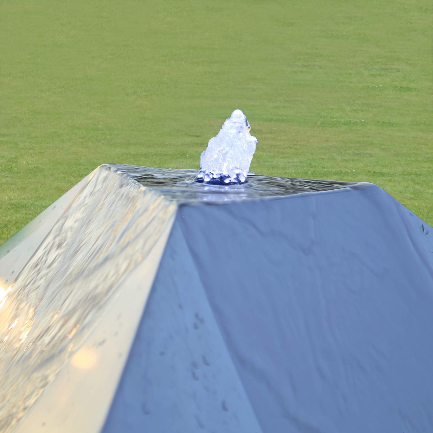 - Das komplette Set beinhaltet ausserdem ein grosses, 150 Liter fassendes Wasserbecken, einen 90cm grossen GFK Deckel, unseren Premium Springbrunnenschlauch und eine speziell angepasste Pumpe mit LED Beleuchtung.