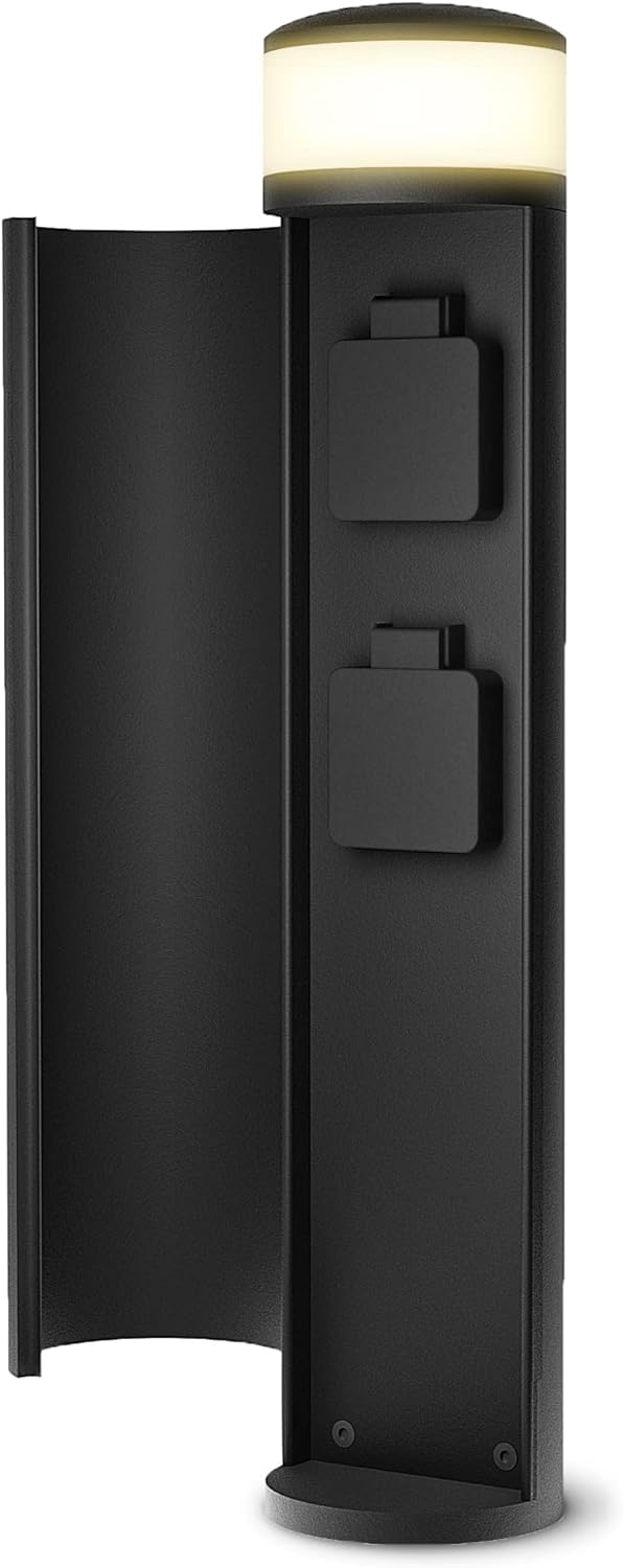 - Eine hochwertige Gartenlampe inklusive G9 Fassung für angenehmes Licht und zwei Steckdosen für Strom im Garten