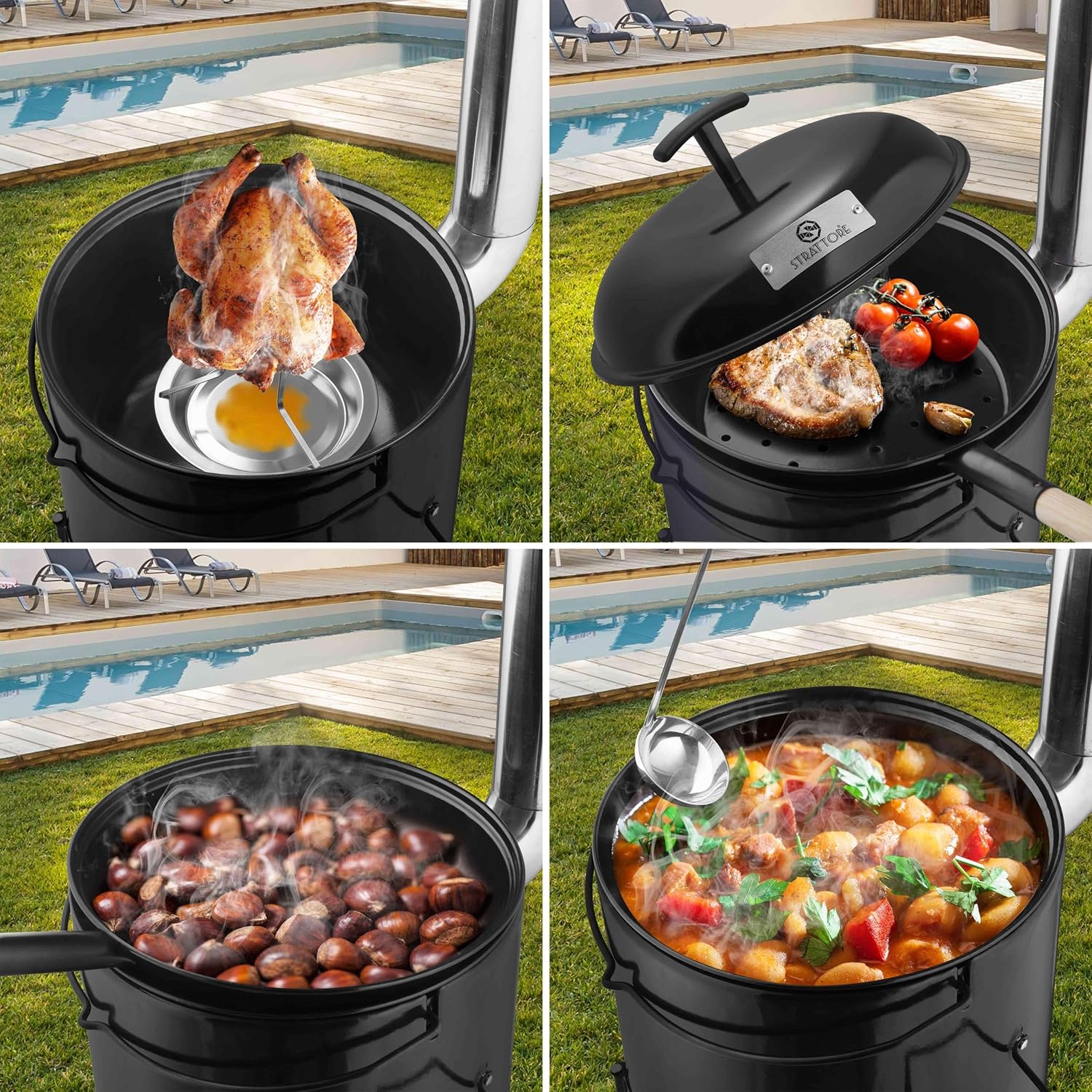 - GRILLFUNKTIONEN: Die Gulaschkanone bietet vielseitige Grillfunktionen wie das gleichmässige Braten von Hähnchen für knusprige Haut und saftiges Fleisch sowie die Zubereitung von Gerichten wie Chili con Carne und Kesselsuppen für unterschiedliche