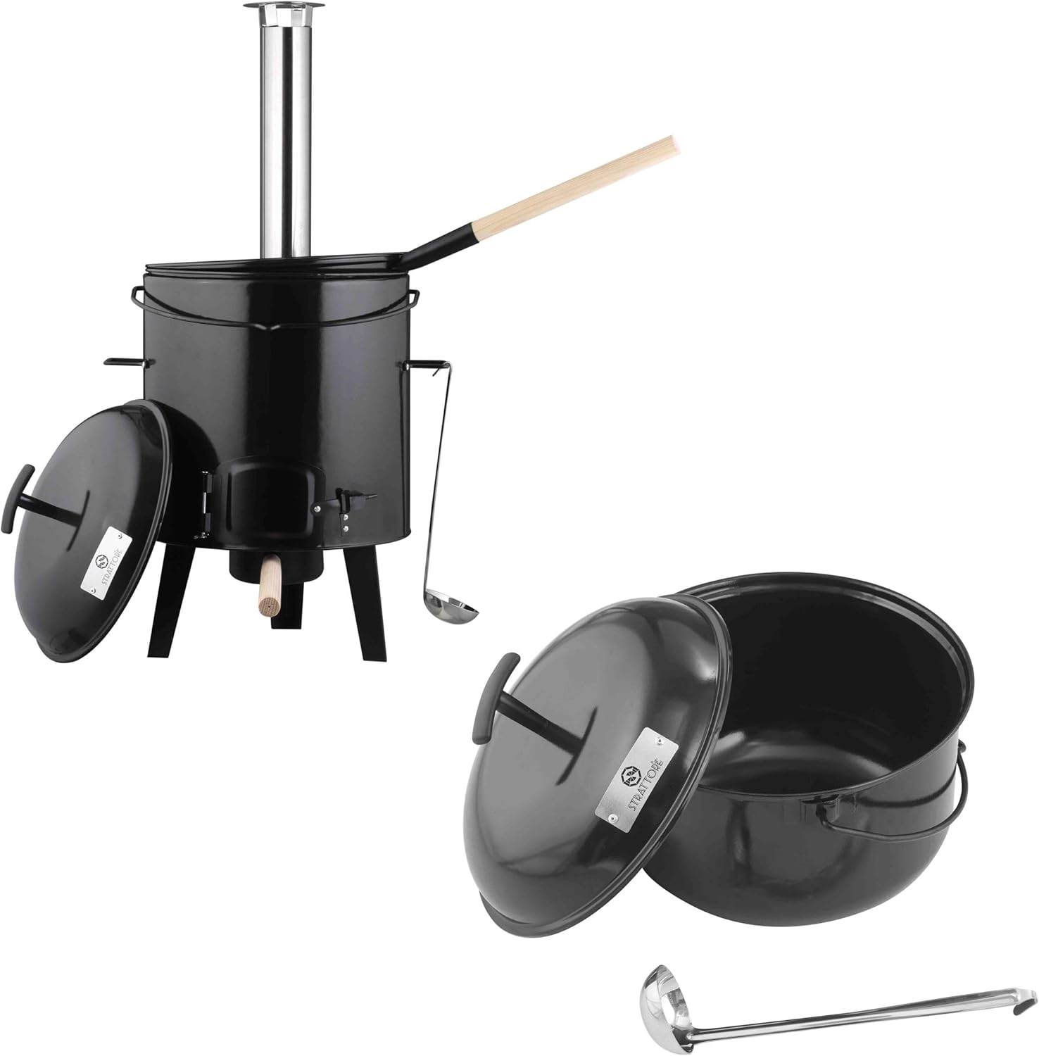 - VIELSEITIGKEIT: Die Gulaschkanone ermöglicht die Zubereitung von bis zu 19 Litern köstlicher Speisen im Garten, auf dem Campingplatz oder bei verschiedenen Festen dank ihrer 5-in-1-Funktion für Kochen, Grillen, Rösten, Dünsten und Braten