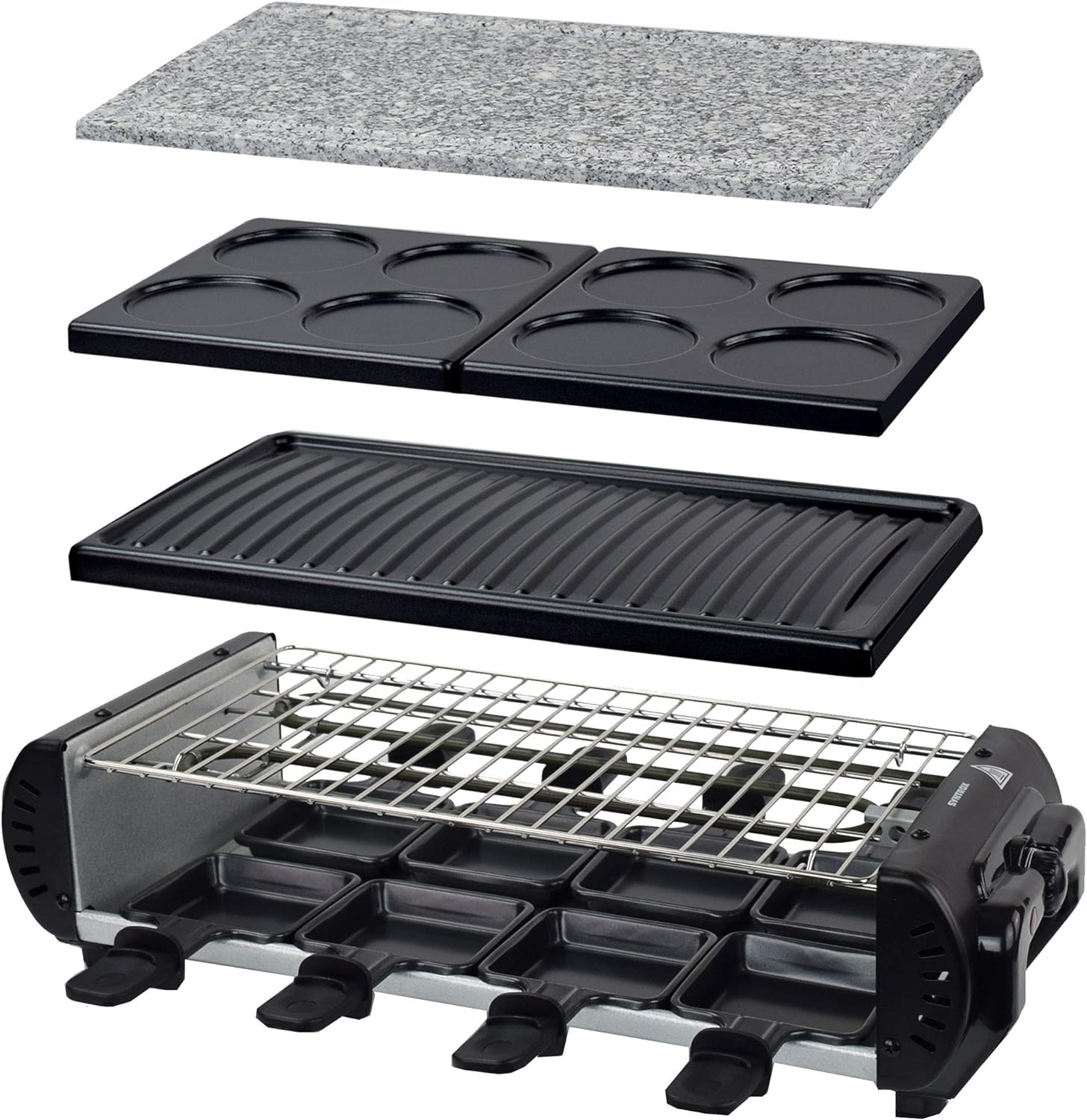 - Partyspass für bis zu 8 Personen: Multifunktionaler Raclette-Grill mit Naturgrillstein und Wendegussplatte – Zur kreativen Zusammenstellung von überbackenen Köstlichkeiten