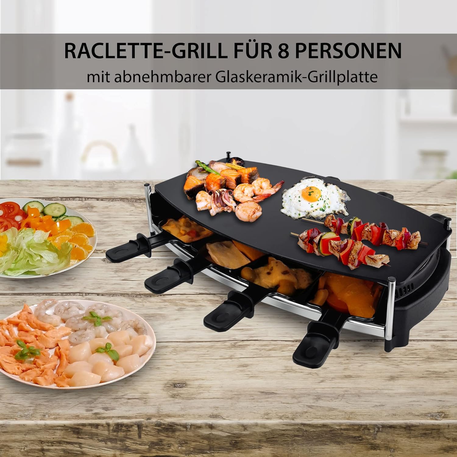 - ⭐ Am Raclette-Grill können bis zu 8 Personen gleichzeitig Platz nehmen.