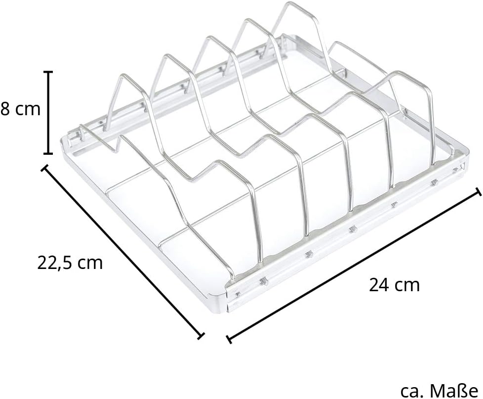 - Masse: ca. 24 x 23 x 8cm - ausgestattet mit fünf Halte-Streben für z.B. 4x Koteletts – klappbar und platzsparend verstaubar
