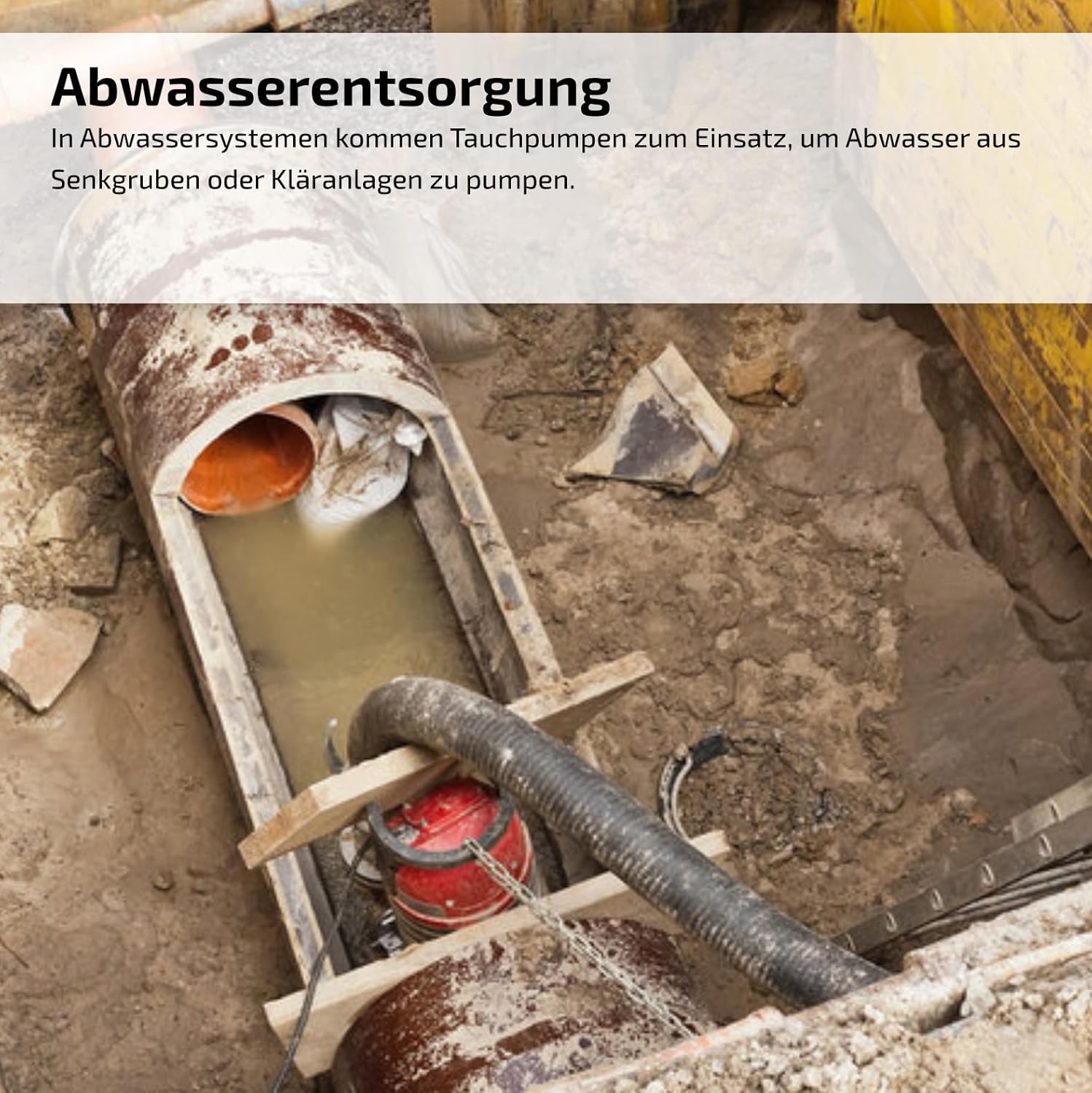 - Power 550 Watt, Förderhöhe 6m, Fördermenge 6000l/h, Eintauchtiefe 5m