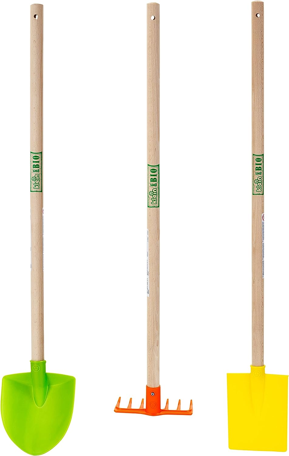 - Das Gartenspielzeug-Set besteht aus einer Schaufel, einem Rechen und einem Spaten um den Garten zu bepflanzen, zu pflegen und Erde umzugraben