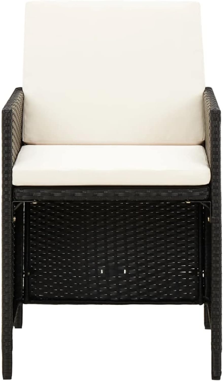 - PE-Rattanfarbe: Schwarz Kissenfarbe: Cremeweiss Material: PE-Rattan, pulverbeschichteter Stahl, Stoff (100% Polyester)