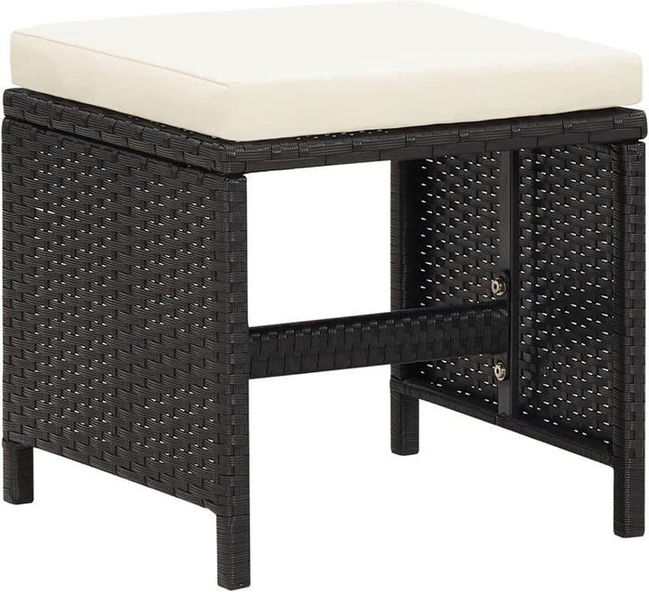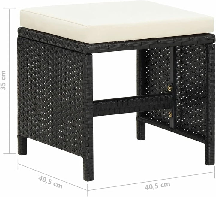 - Der robuste Stahlrahmen ist mit wetterfestem PE-Rattan umwickelt. Das Gartenset aus Stühlen und Hockern ist rost- und schimmelbeständig und bietet jahrelange, hochwertige Entspannung. Der Terrassenstuhl ist mit Rückenlehne und