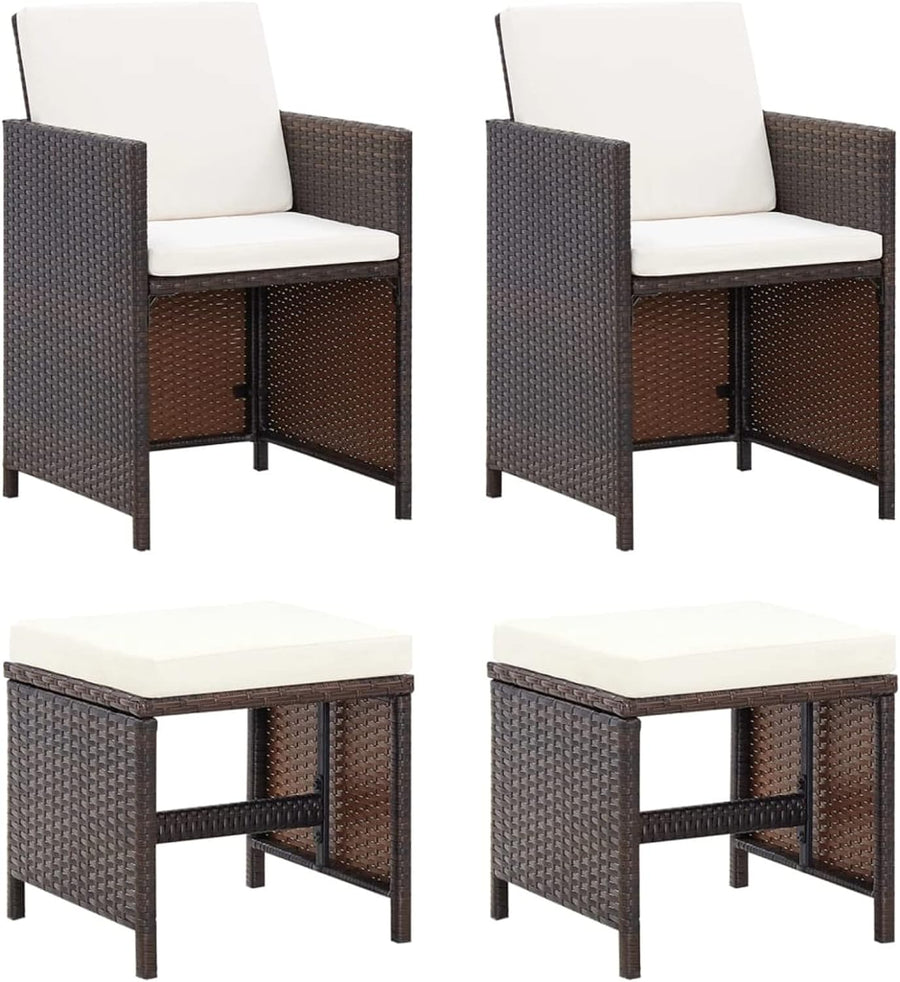 - Tidyard Gartenstuhl Hocker Set 4-TLG.Sitzhocker Fusshocker Gartenhocker Gartensessel Essstuhl Stuhl Sessel Gartenmöbel Terrassenstuhl Poly Rattan Braun